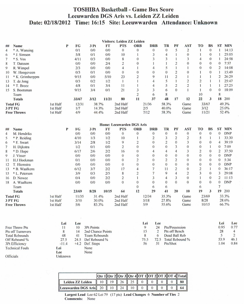 Datum: zaterdag 18 februari 2012 · 16:15 Team: Locatie: Leeuwarden