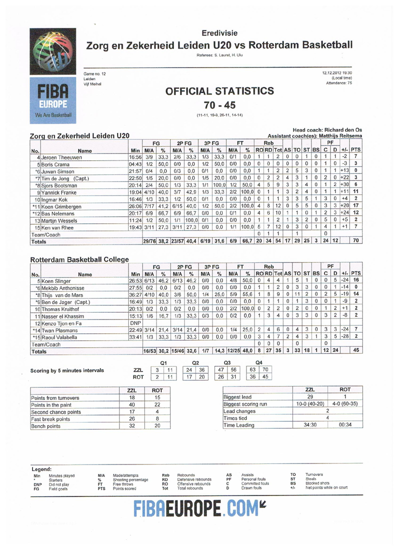 Datum: woensdag 12 december 2012 · 19:30 Team: Locatie: Vijf Meihal, Leiden