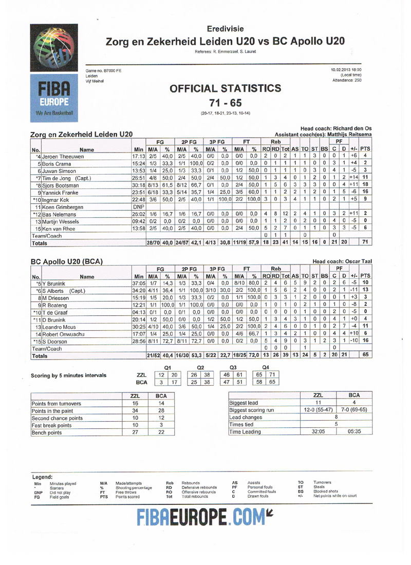 Datum: zondag 10 februari 2013 · 18:00 Team: Locatie: Vijf Meihal, Leiden