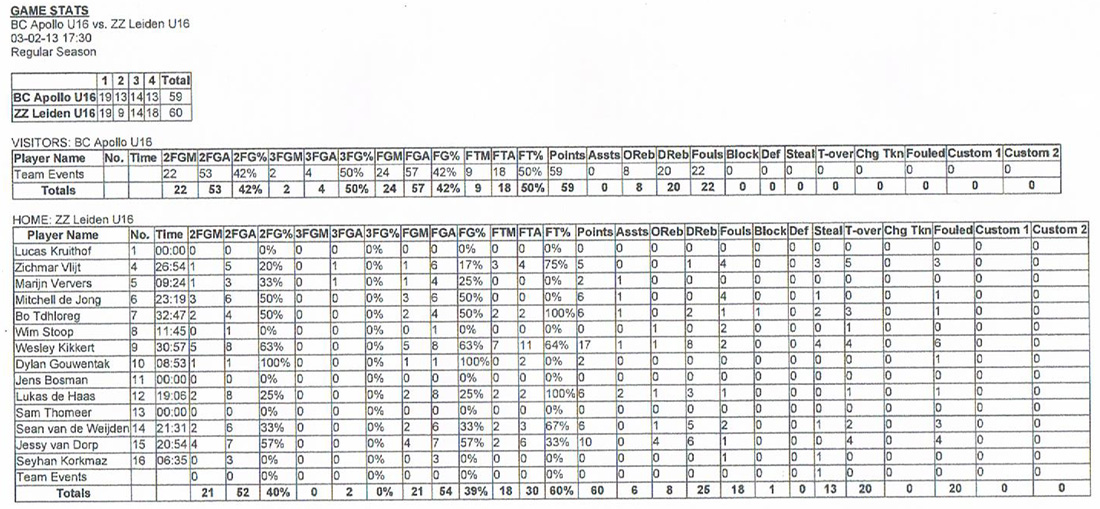Datum: zondag 3 februari 2013 · 17:30 Team: Locatie: Vijf Meihal, Leiden