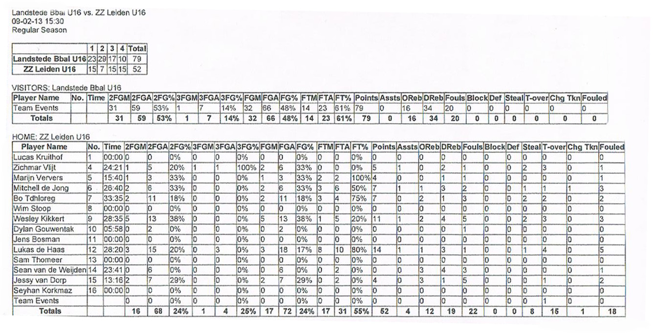 Datum: zaterdag 9 februari 2013 · 15:30 Team: Locatie: Vijf Meihal, Leiden