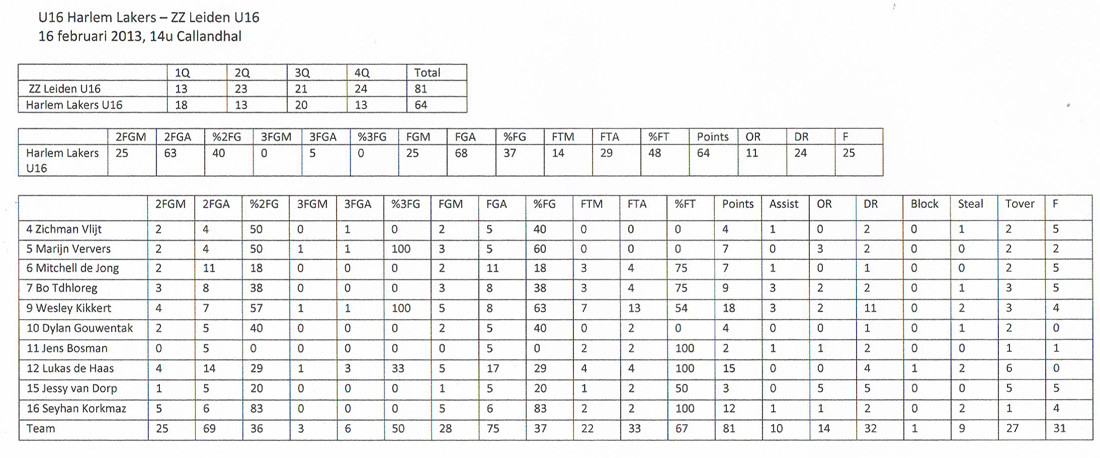 Datum: zaterdag 16 februari 2013 · 14:00 Team: Locatie: Amsterdam-Osdorp