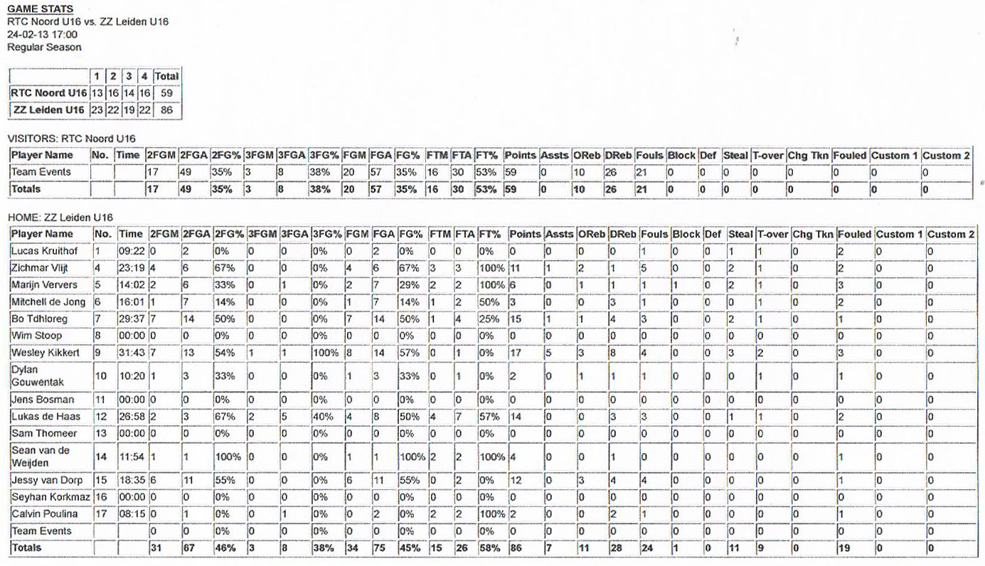 Datum: zondag 24 februari 2013 · 17:00 Team: Locatie: Vijf Meihal, Leiden