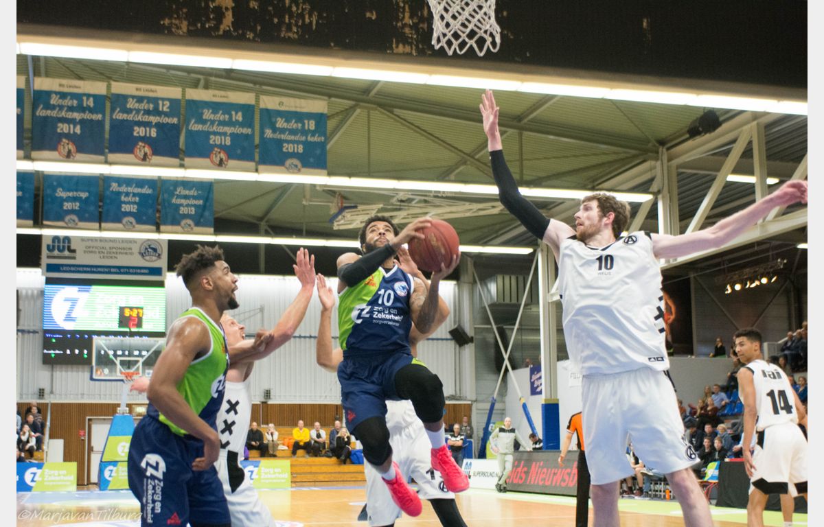In die laatste paar minuten voor de rust sloeg Zorg en Zekerheid Leiden een gaatje. Ververs scoorde vijf punten op rij, waarna Clayton Vette twee drietjes op rij door de ring liet glijden. De laatste driepunter, met bord, bracht de ruststand op 44-31. Die 11-0 run betekende feitelijk al einde wedstrijd, aldus Faijdherbe naderhand.