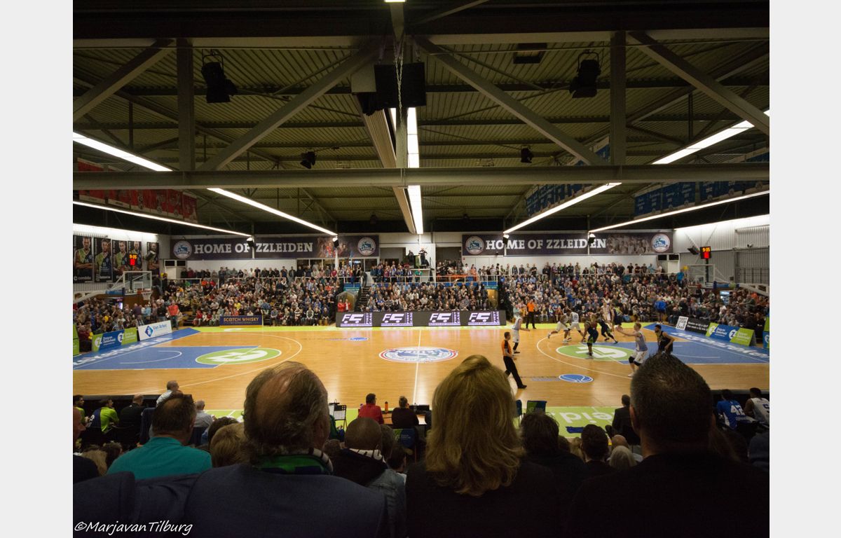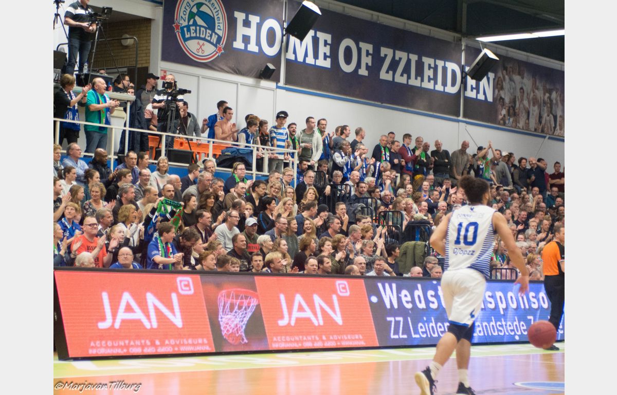 In de op een haar na uitverkochte Vijf Meihal gaven beide ploegen elkaar weinig toe. Zorg en Zekerheid Leiden speelde niet op het hoge niveau van afgelopen woensdag tegen Dinamo Sassari. Het is ook niet eenvoudig om dat hoge niveau vast te houden. Daarbij moet gezegd worden dat Landstede Basketbal ook gewoon een goede ploeg heeft. Met een goede spelverdeler in Kaza Kajami-Keane en een iets bredere bank dan die van Zorg en Zekerheid Leiden.