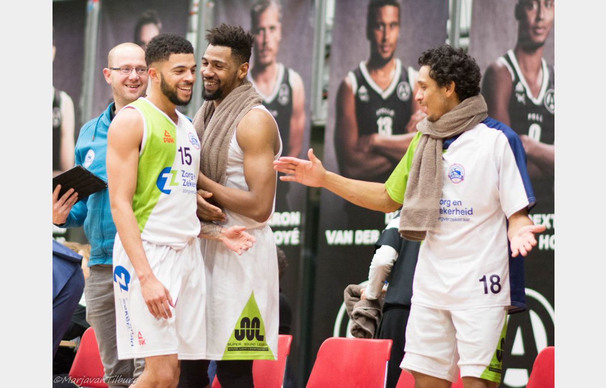 Vette en Thompson waren goed voor 19 punten, De Jong tekende voor 18 punten. Kherrazi speelde een wedstrijd zoals we van hem gewend zijn: niet al te veel scores, maar wel weer 9 rebounds, 6 assists en 4 steals. Thompson had eveneens 6 assists en tekende voor 7 steals. Morgen even uitrusten en dan op naar zondag als Apollo Amsterdam te gast is in de Vijf Meihal (aanvang 19.30 uur).