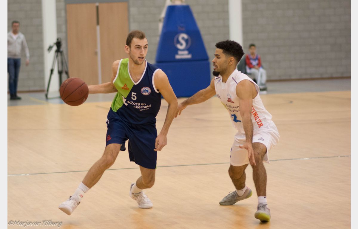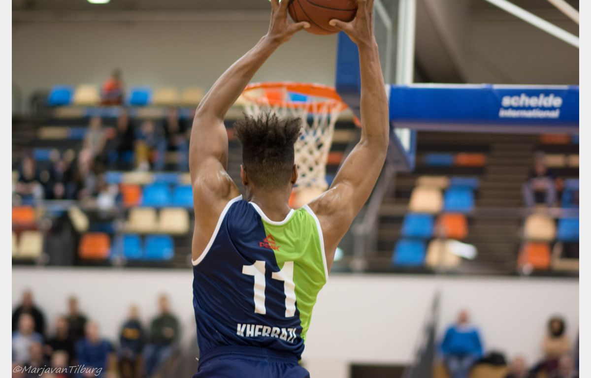 Een 8-0 run van de Dordtse formatie noopte coach Rolf Franke tot een time-out. De marge groeide zelfs naar zeven punten, maar met zijn tweede drietje beperkte De Jong de achterstand na het eerste kwart tot 22-18.