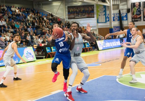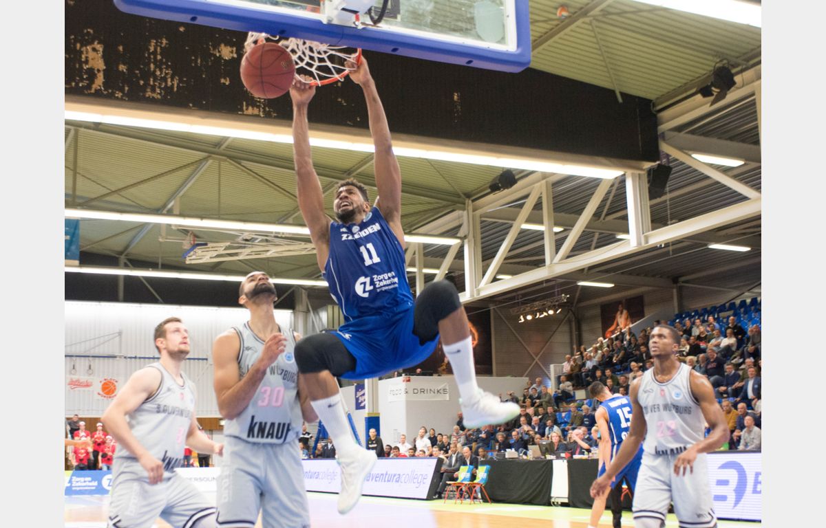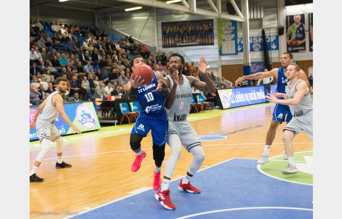 Na 57-56 ging het licht voor de thuisploeg uit. Würzburg scoorde in nog geen drie minuten tijd 14 punten op rij: 57-70. Via een and-1 van Watson en lay-ups van Thompson en De Jong kwam Zorg en Zekerheid Leiden nog even terug tot 65-72, maar het slotakkoord was voor Florian Koch: 65-75.