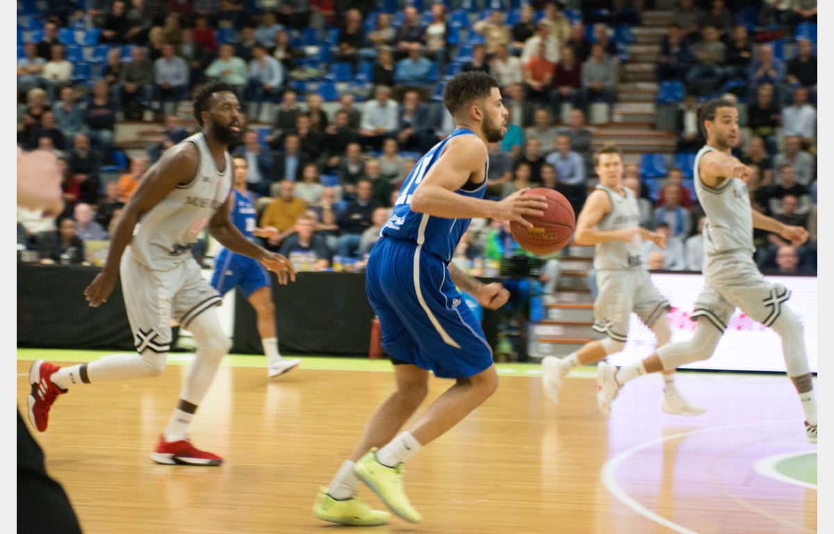 Aanvankelijk leken de Leidse spelers af te stevenen op een overwinning, maar dat duurde niet lang. De start van de thuisploeg was goed. Via een driepunter van Worthy de Jong, een doordunk van Mohamed Kherrazi en een lay-up van Darius Thompson stond het na anderhalve minuut al 7-0. Cameron Wells, die in het seizoen 2011/2012 voor Landstede Basketbal uitkwam, opende de score voor de Duitse ploeg. Clayton Vette en de niet 100% fitte De Jong knalden er nog maar eens driepunters in, waardoor de stand in de vijfde minuut op 13-4 kwam te staan.