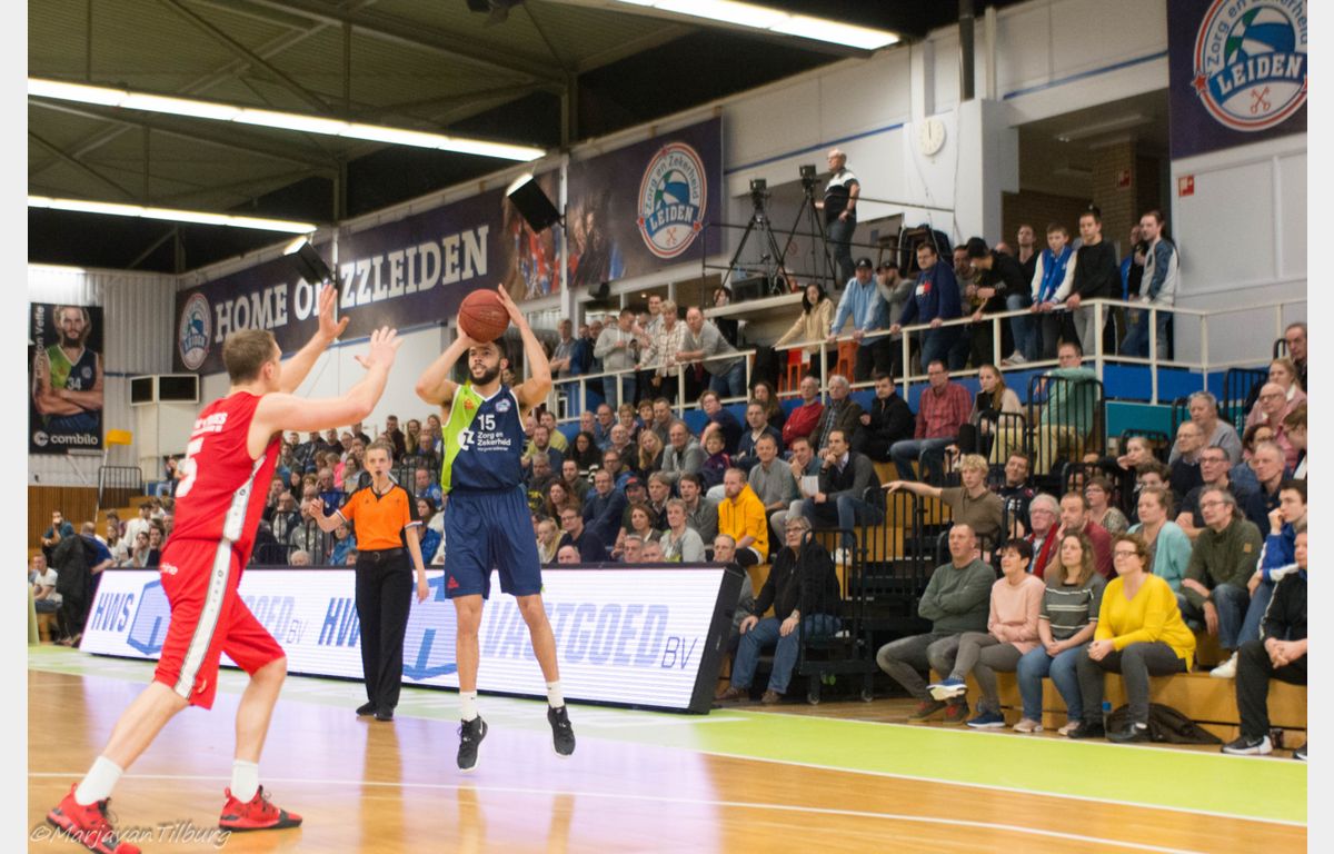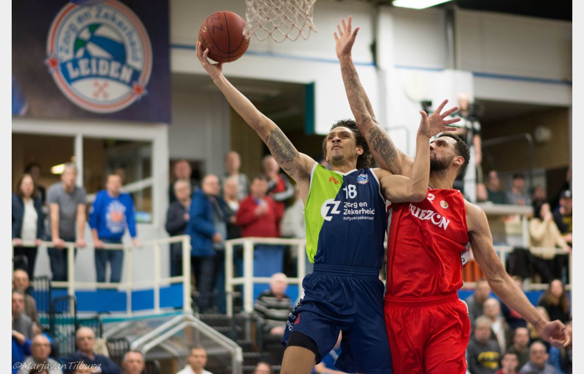 Zorg en Zekerheid Leiden voert de ranglijst van de Dutch Basketball League aan. Virtueel was dat al zo, maar nu is het ook gebaseerd op het aantal winstpunten. Om dit te bereiken, moest de Leidse ploeg woensdagavond winnen van Aris Leeuwarden. In een spectaculaire wedstrijd lukte dit volgens verwachting ook. Via een ruststand van 46-34 werd het uiteindelijk 96-75.