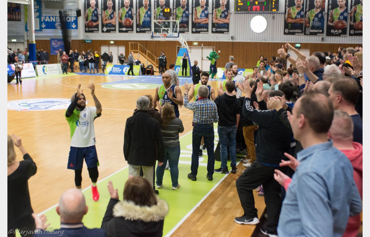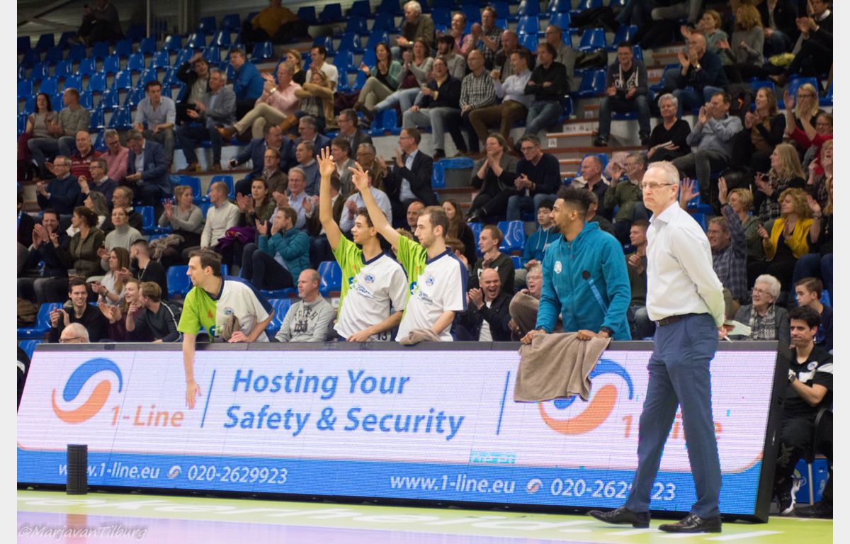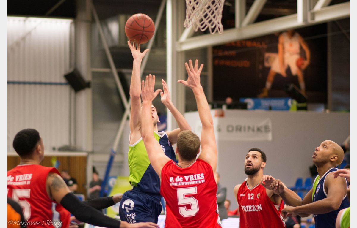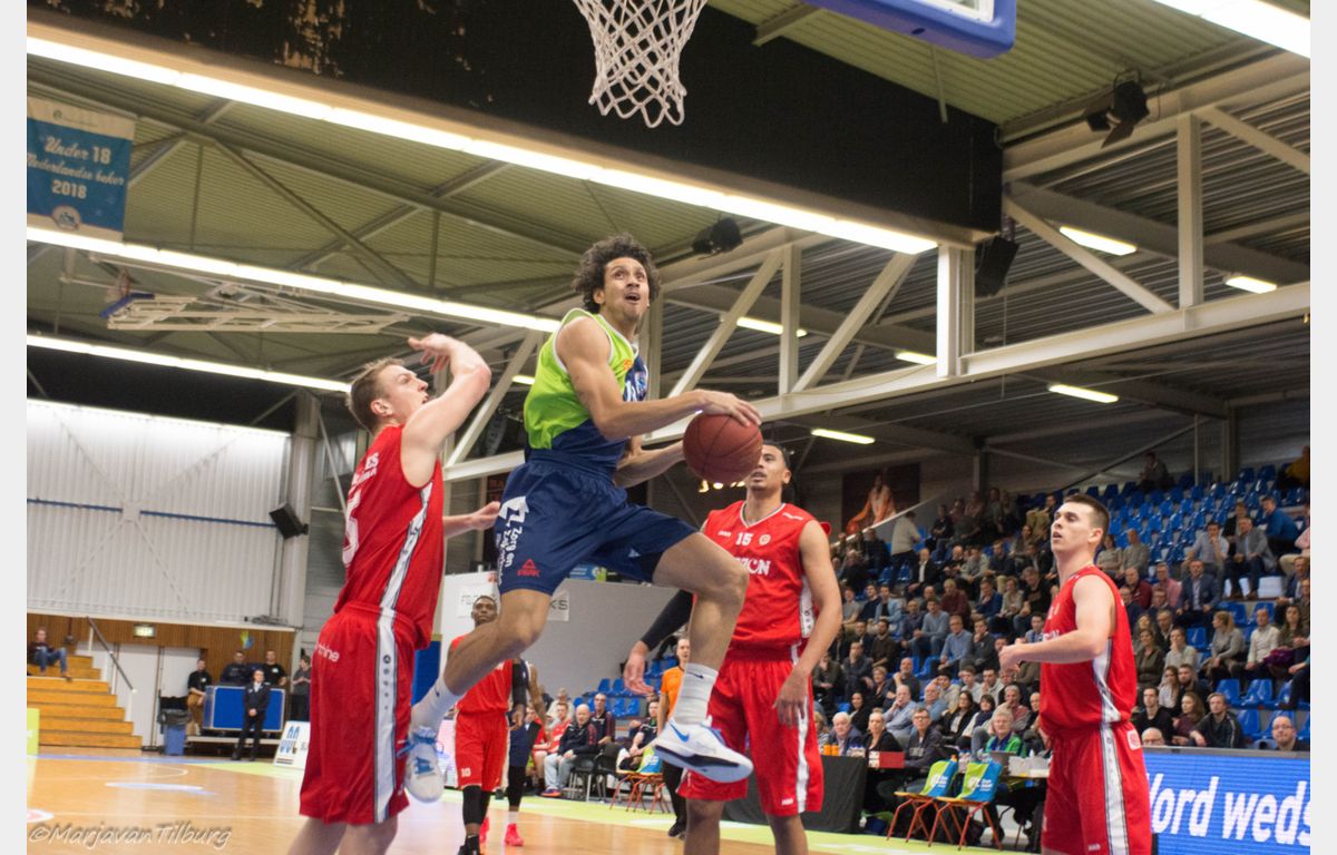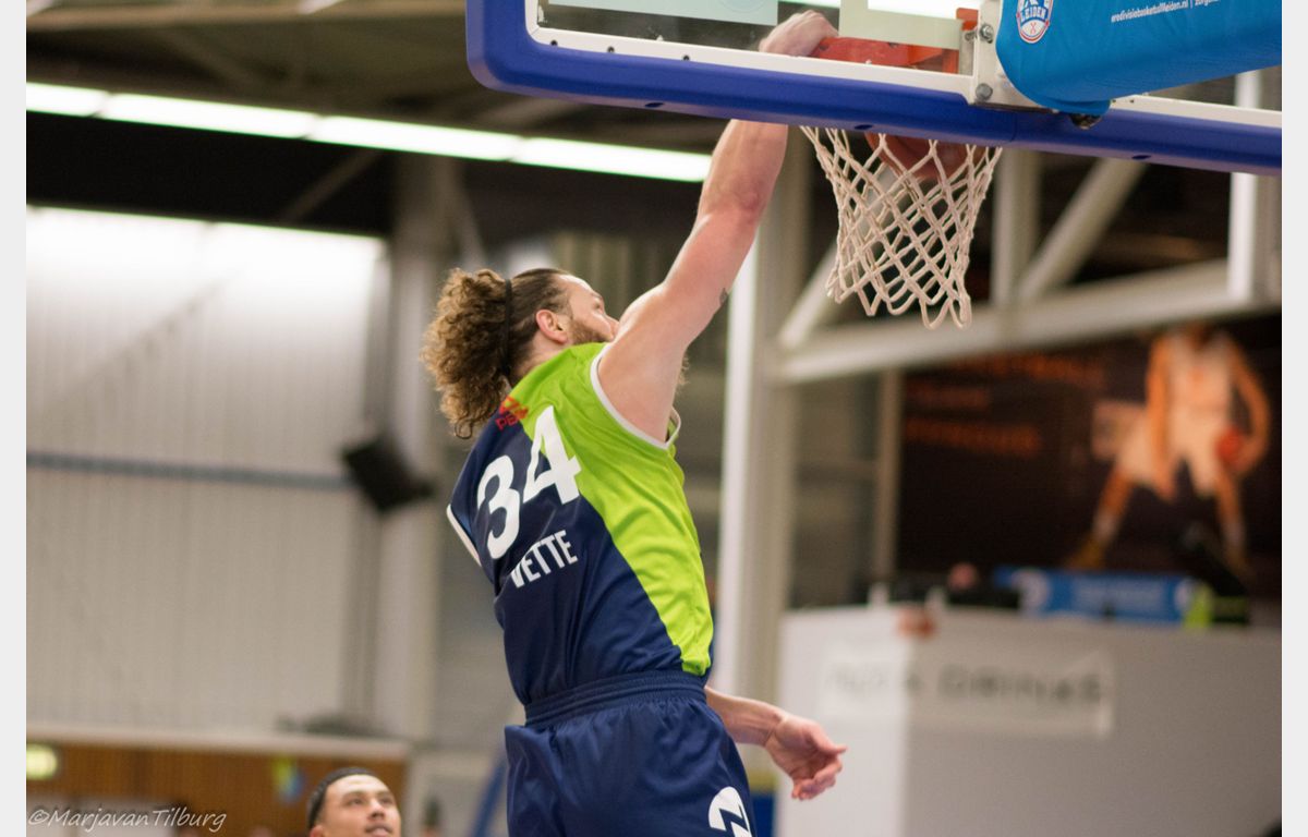 “Als het zo makkelijk gaat, dan wil je soms wel eens iets te veel”, constateerde Rolf Franke. En dat gebeurde op een gegeven moment ook. Mede door een dunk van Vette stond het na twee minuten spelen in het tweede kwart 37-20. Aris Leeuwarden begon beter te basketballen. David Michaels (eerste helft 11 punten) knalde er een driepunter in, terwijl Griffin Kinney zich voor de rust met 13 punten ook al in de dubbele cijfers schoot. Bij 41-25 gooiden de Friezen er een 9-0 run tegenaan om terug te komen tot 41-34. Via een drietje van Vette en een lay-up van Thompson werd de eerste helft afgesloten bij 46-34.