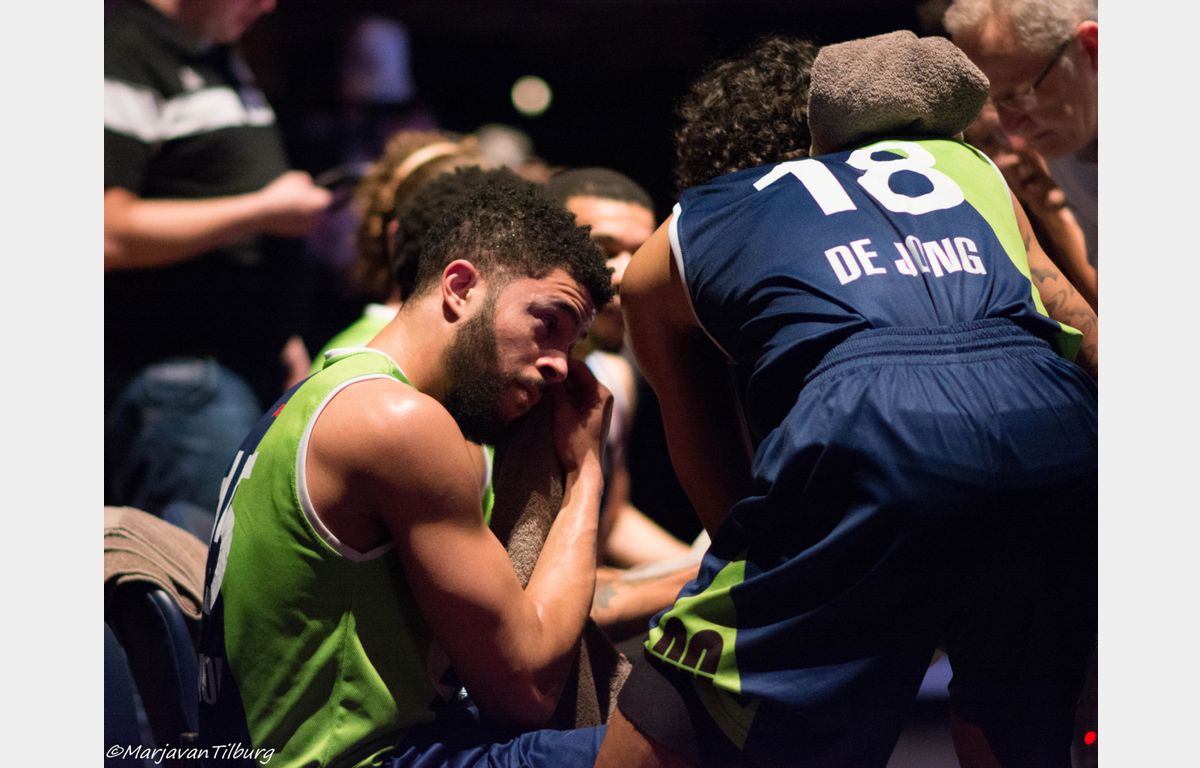 Zorg en Zekerheid Leiden bleef vervolgens lang in de kleedkamer. De coaches Rolf Franke en Bert Samson waren al weer terug in de hal, maar de spelers kwamen pas één minuut voor de start van het derde kwart weer terug in de hal. Blijkbaar deed dat de Leidse formatie goed, want Clayton Vette – voor rust nog zonder scores – drilde in anderhalve minuut tijd twee drietjes door de ring: 37-42.