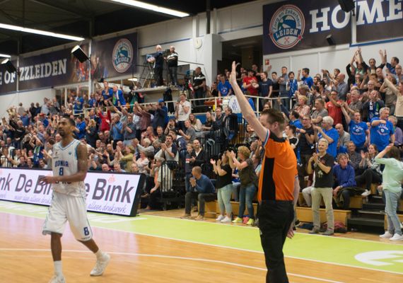 Donar zag het gevaar en vergrootte de marge weer. In de tweede minuut van het laatste kwart betekende een drietje van Grant Sitton 55-71 en was de nood aan de man voor de Leidse ploeg. Na bommetjes van Watson en De Jong en een and-1 van Sergio De Randamie (vooraf gehuldigd als speler van de maand maart) was het na vier minuten 64-74.