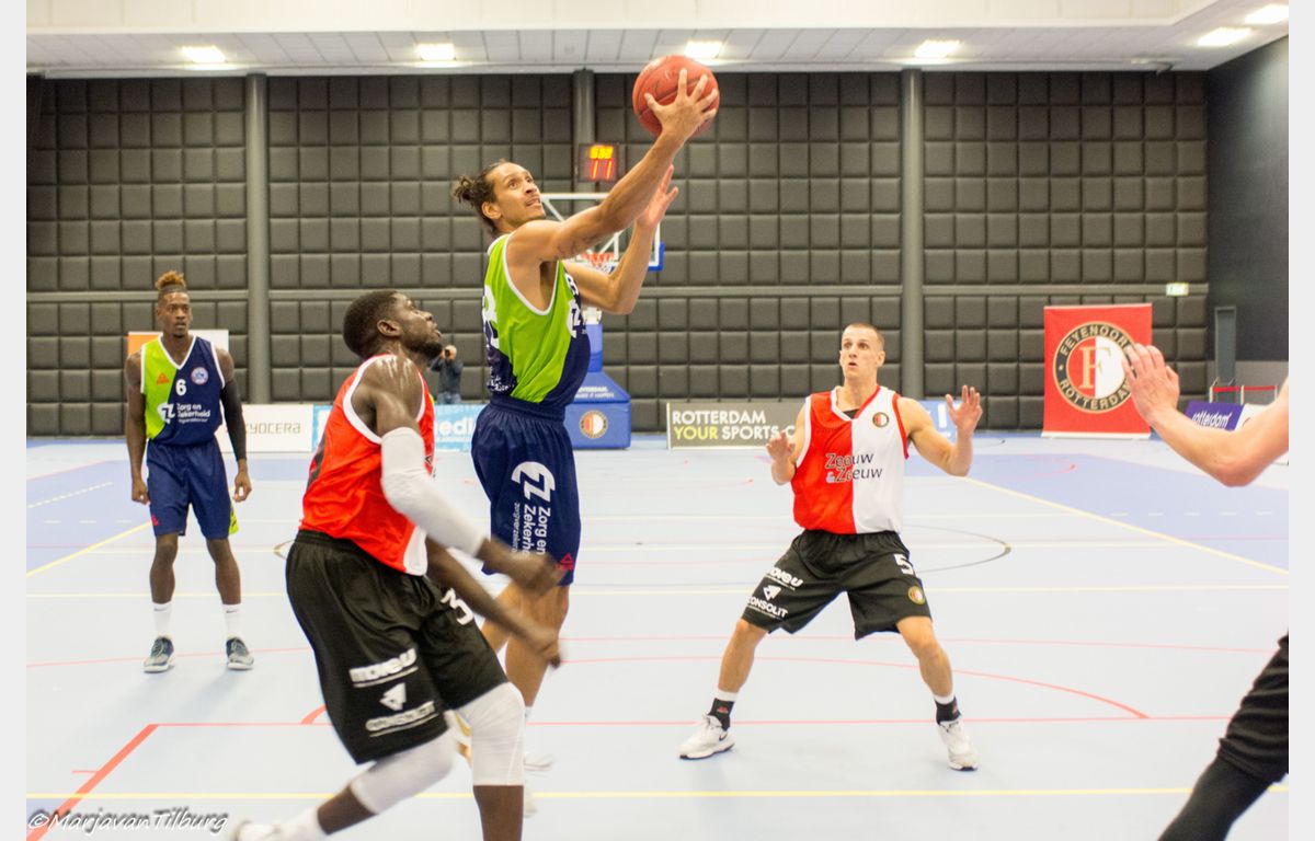 Zorg en Zekerheid Leiden is het seizoen met een overwinning begonnen, maar makkelijk ging het allemaal niet. Zeven minuten na rust stond Zeeuw & Zeeuw Feyenoord Basketball met 61-51 voor. De Leidse ploeg herstelden zich snel, maar wist de Rotterdammers niet echt van zich af te schudden. Uiteindelijk was de marge drie punten in Leids voordeel.