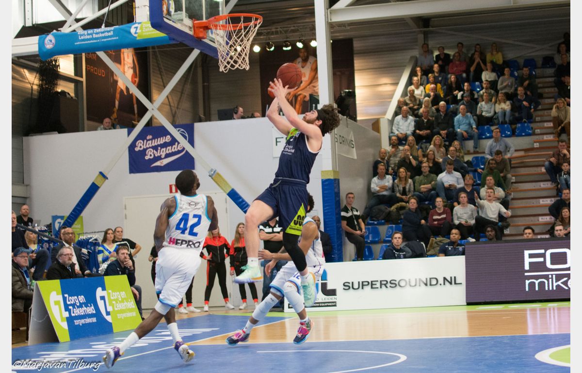 Zorg en Zekerheid Leiden heeft zaterdag de eerste thuisnederlaag van het seizoen geleden. De Leidse ploeg kwam al vrij snel op achterstand, vocht zich terug, maar moest het incomplete Donar in het vierde kwart laten gaan. Drie turnovers bij een penetratie kwamen Zorg en Zekerheid Leiden uiteindelijk duur te staan. Donar pakte derhalve de winst met 72-80.