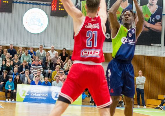 Zorg en Zekerheid Leiden heeft zich gerevancheerd voor de nederlaag in Den Bosch en toch ook wel voor de grote nederlaag van afgelopen woensdag tegen Pinar Karsiyaka. De Leidse ploeg schoot uit de startblokken: 15-3 na vijf minuten. Na de pauze (44-30) kwam Heroes Den Bosch een paar keer gevaarlijk dichtbij, maar telkens stond een andere Leidse speler op. Uiteindelijk werd het 88-78 voor Zorg en Zekerheid Leiden.