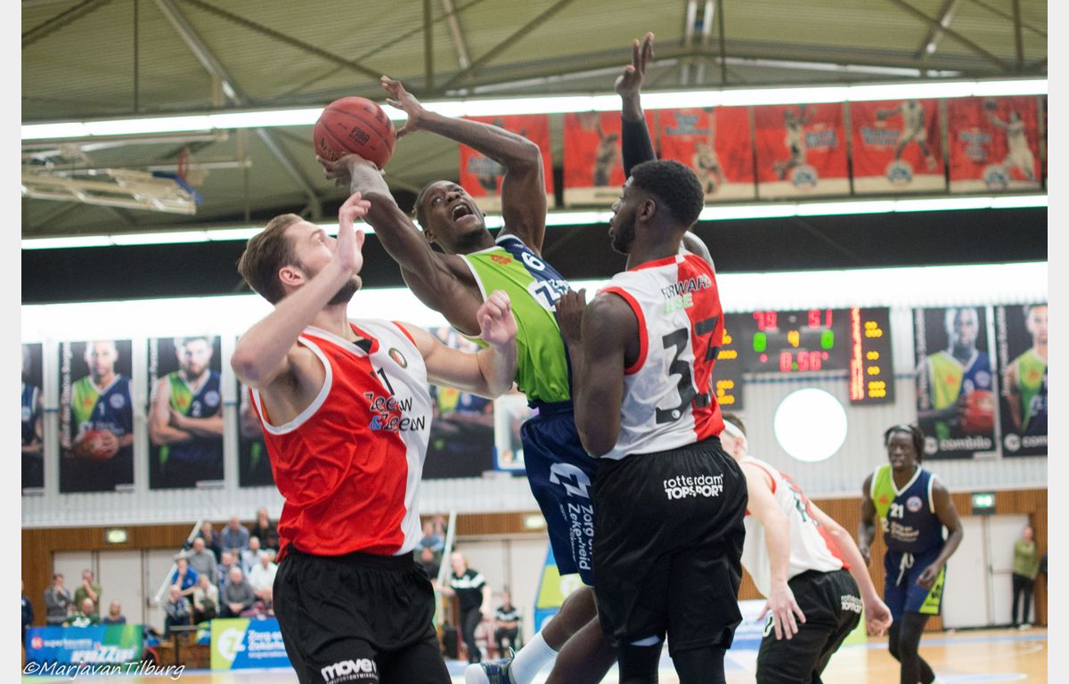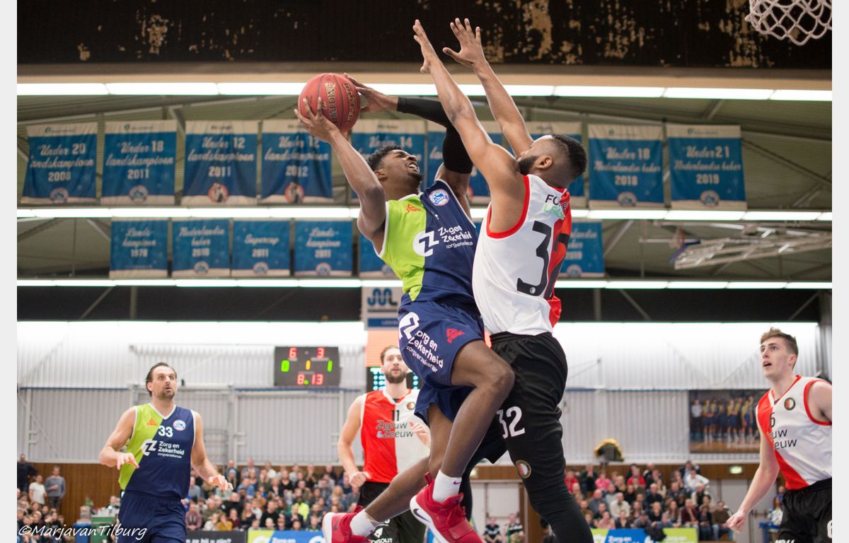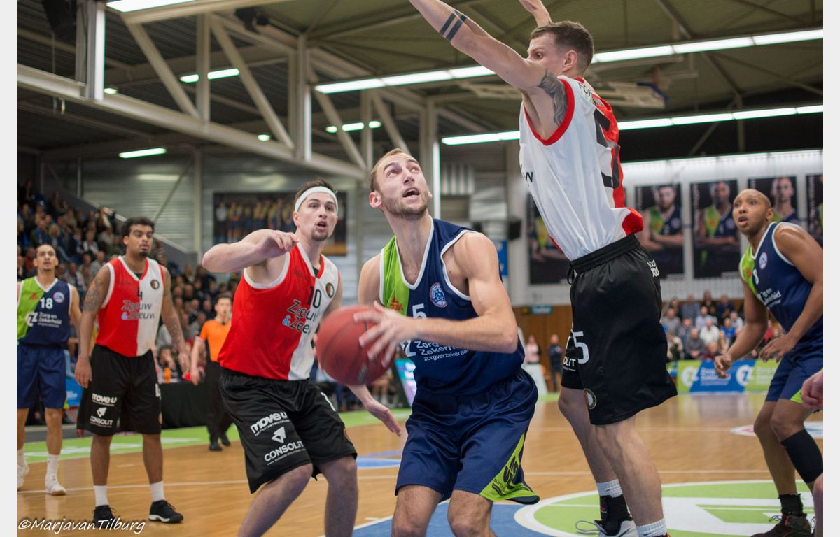 Zorg en Zekerheid Leiden was niet van plan zich te laten verrassen door Zeeuw & Zeeuw Feyenoord Basketball. De Leidse ploeg was klaar om te spelen, de Rotterdammers niet. De bezoekers konden het Leidse tempo in de eerste tien minuten niet bijbenen. Het frivool spelende Zorg en Zekerheid Leiden denderde door naar een 36-12 zege. Daarna kwamen de Rotterdammers wel wat beter in de wedstrijd, maar dat was bij lange na niet genoeg om de winst te pakken. Bij 96-81 kwam de wedstrijd ten einde en is Zorg en Zekerheid Leiden de Rotterdammers op de ranglijst gepasseerd.
