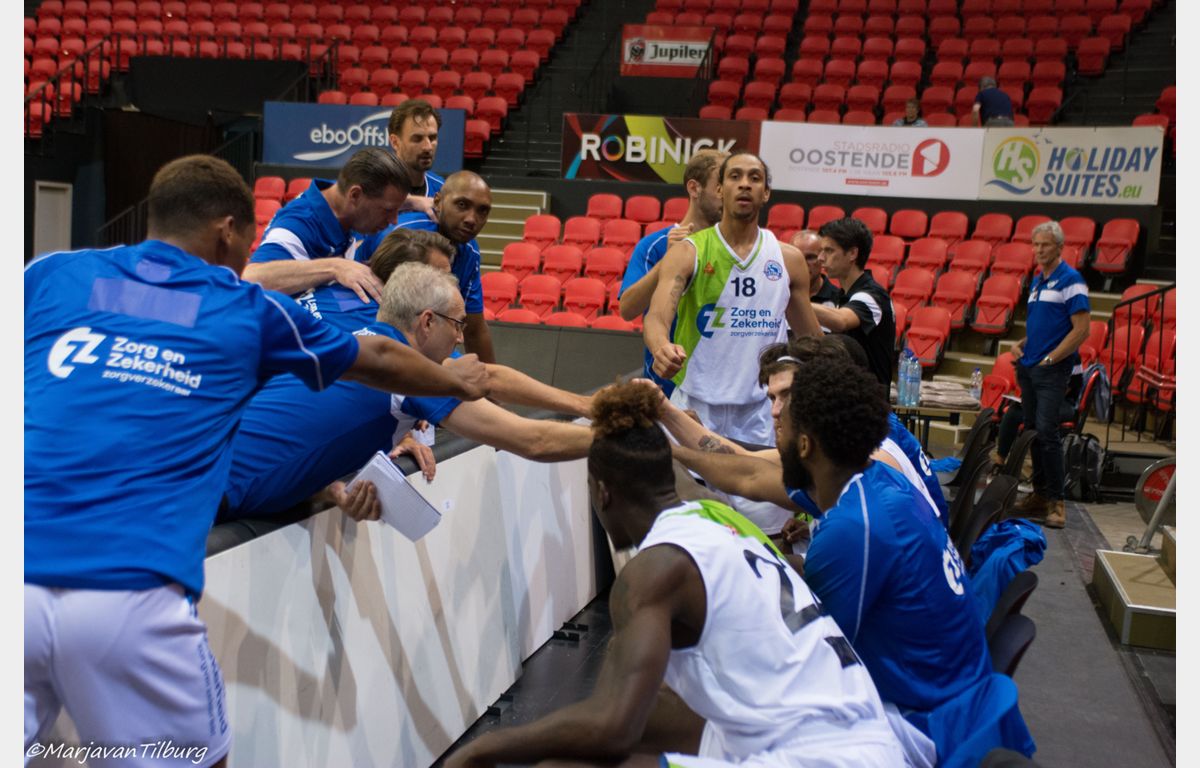 Huggins, afgelopen zaterdag nog topscorer, kwam er in Oostende nauwelijks aan te pas. De schutter eindigde met 6 punten. De Jong speelde een sterke pot. Hij sloot het duel af met 27 punten en 7 assists. Persons kwam tot 17 punten (12 na rust) en Williams eindigde met 10 punten en 7 rebounds.