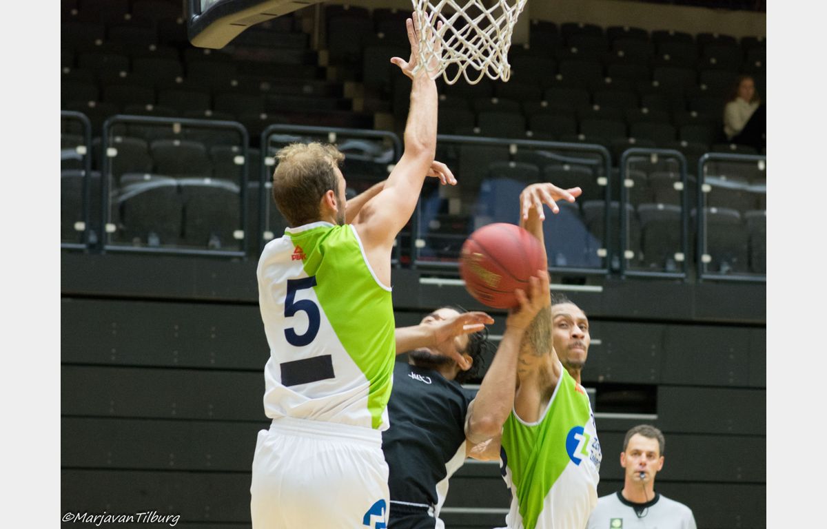 Scores: Worthy de Jong 25 (12 rebounds, 5 assists), Tayler Persons 20 (5 assists), Braxton Huggins 22 (7 rebounds), Marijn Ververs 11, Josh Cunningham 5 (6 rebounds), Sergio de Randamie 3 (3 blocks). Troy Koehler kwam niet tot scoren.