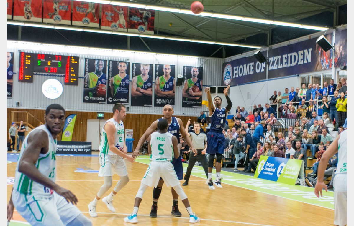 Beroe kroop langzaam dichterbij via Lilov en Yanev. Met nog een kleine drie minuten te gaan, was het gat nog maar acht punten: 63-55. Toch had Zorg en Zekerheid Leiden nog wat extra’s in huis. Huggins en De Randamie knalden drietjes binnen. Vlak voor de buzzer schoot Huggins van ver nog een driepunter door de ring, die enigszins deed herinneren aan de driepunters van Darius Thompson vorig seizoen tegen Sakarya. Met een voorsprong van 16 punten sloot de Leidse ploeg het derde kwart af: 74-58.