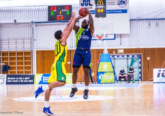 Zorg en Zekerheid Leiden is na zes wedstrijden nog steeds ongeslagen. The Hague Royals bood dapper tegenstand en bleef lang in de wedstrijd hangen. Pas in het laatste kwart nam de Leidse ploeg in hoog tempo afstand van de Haagse debutant. Aan het eind van de wedstrijd gaf het scorebord 90-64 aan. Emmanuel Nzekwesi was de grote man met 33 punten en 15 rebounds.