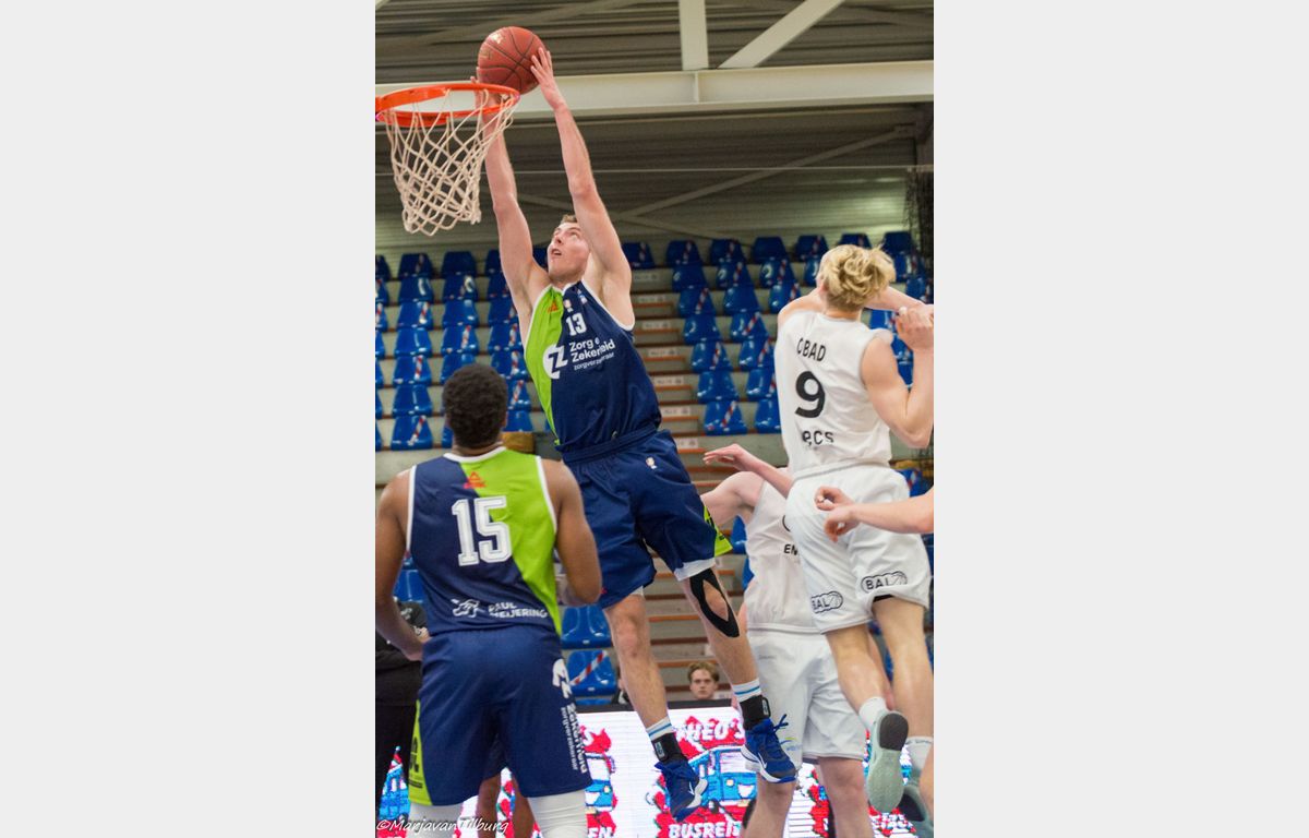 Nzekwesi buffelde zich door naar een double (19 punten, 10 rebounds) en Van Bree kwam na een goede fake even lekker door met een fraaie dunk. Calvin Poulina knalde er een verre driepunter in, waarna Worthy de Jong nog even snel wat scores aaneenreeg. De Jong sloot af met 16 punten, Ververs kwam aan 14 punten en Potts droeg nog 10 punten bij.