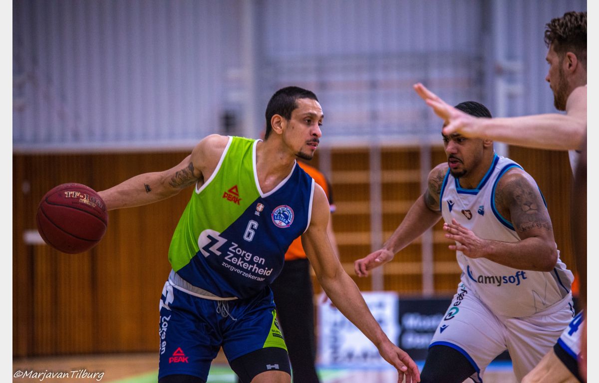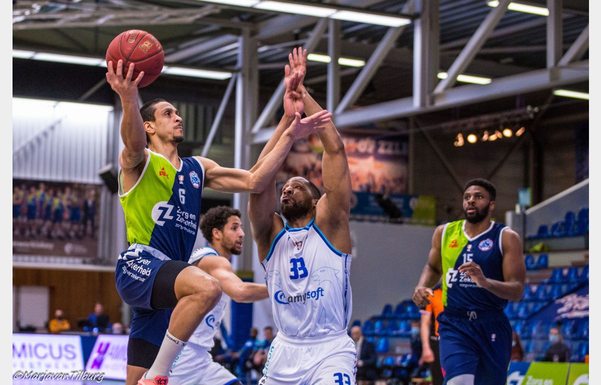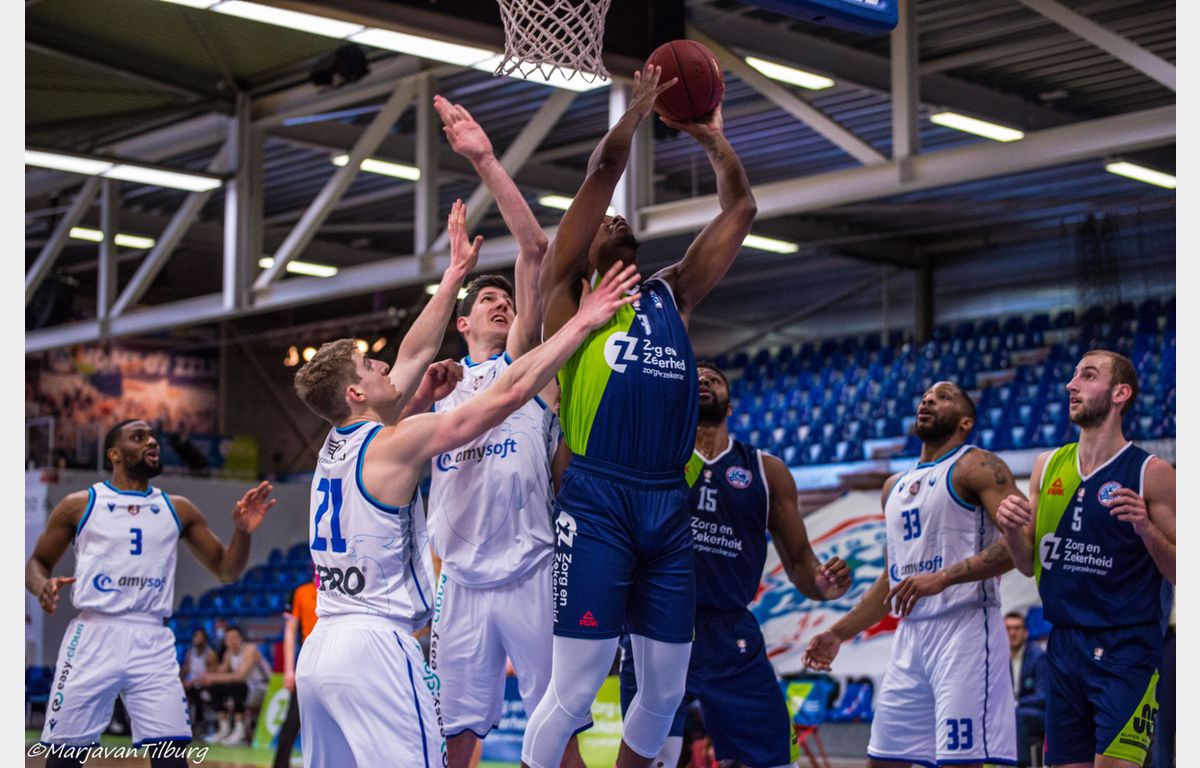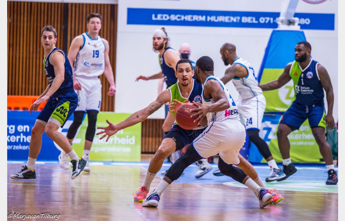 Zorg en Zekerheid Leiden heeft een belangrijke overwinning geboekt. Voor de tweede keer dit seizoen werd Donar terug naar huis gestuurd met een nederlaag aan de broek. De Leidse ploeg speelde sterk, voerde het tempo op en liep via een 55-44 ruststand uit naar een 96-91 overwinning. Diverse keren liep het verschil op naar 18 punten. In de slotfase kwam Donar iets dichterbij, maar echt dreigend werd het niet. Hierdoor heeft Zorg en Zekerheid Leiden bij gelijk eindigen met Donar het voordeel op basis van onderling resultaat.