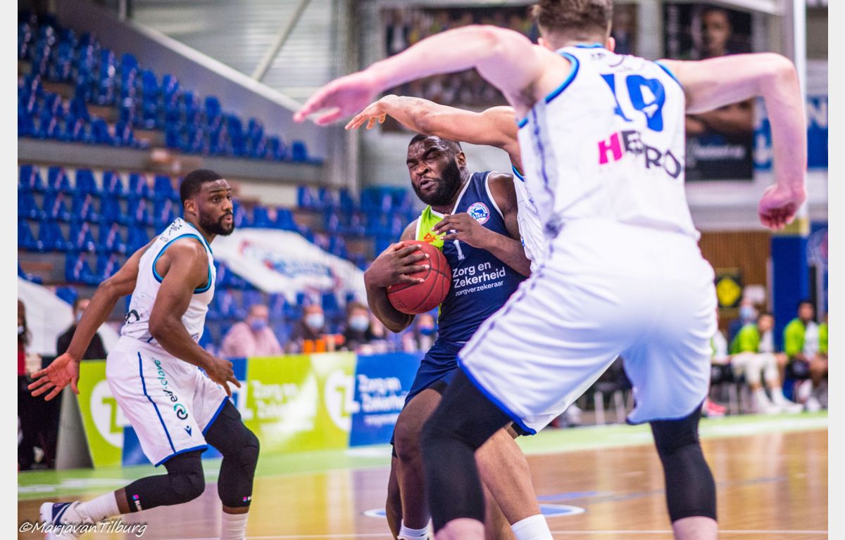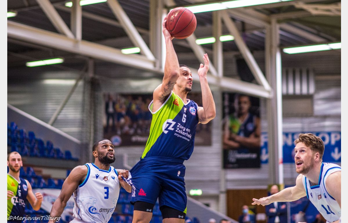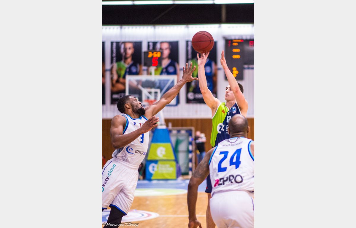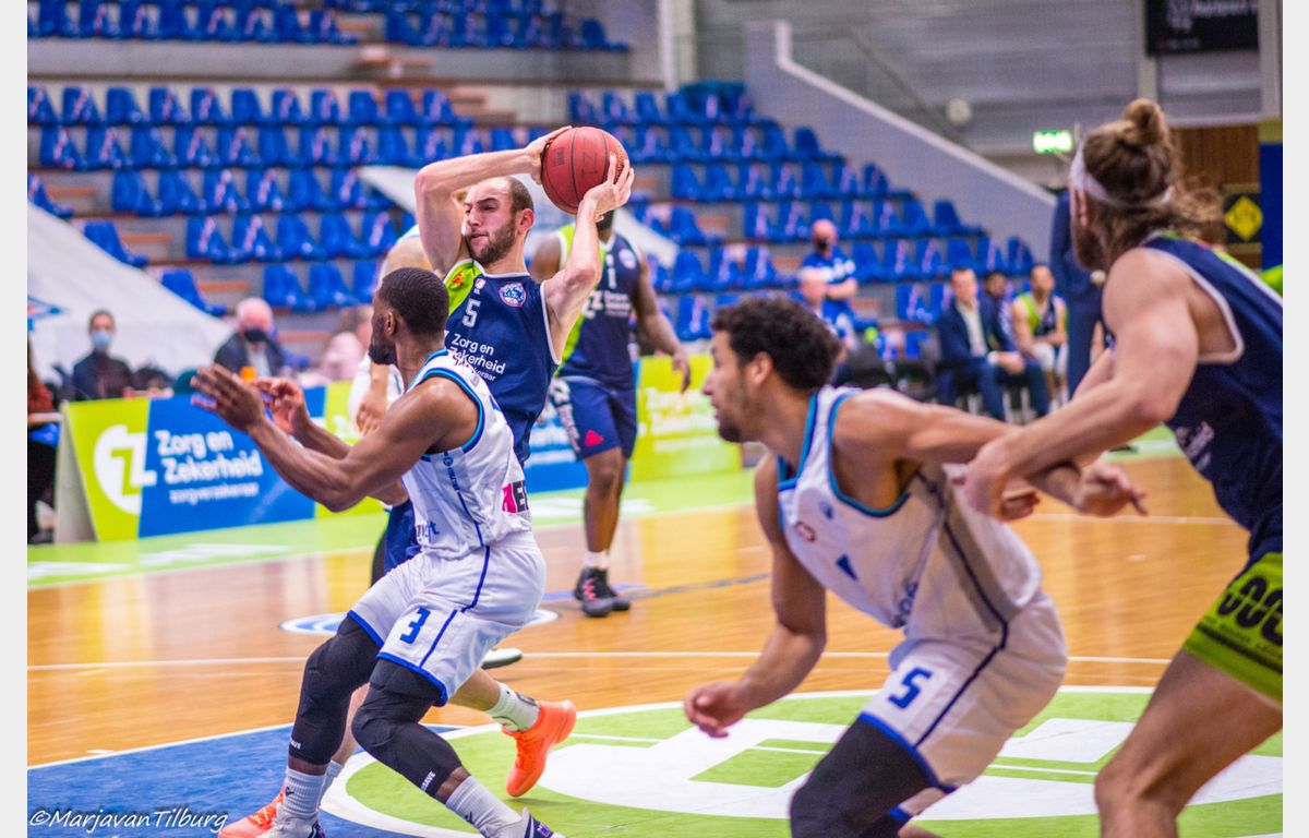 Zorg en Zekerheid Leiden heeft een belangrijke overwinning geboekt. Voor de tweede keer dit seizoen werd Donar terug naar huis gestuurd met een nederlaag aan de broek. De Leidse ploeg speelde sterk, voerde het tempo op en liep via een 55-44 ruststand uit naar een 96-91 overwinning. Diverse keren liep het verschil op naar 18 punten. In de slotfase kwam Donar iets dichterbij, maar echt dreigend werd het niet. Hierdoor heeft Zorg en Zekerheid Leiden bij gelijk eindigen met Donar het voordeel op basis van onderling resultaat.
