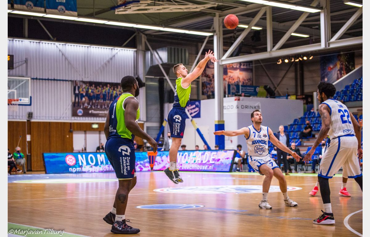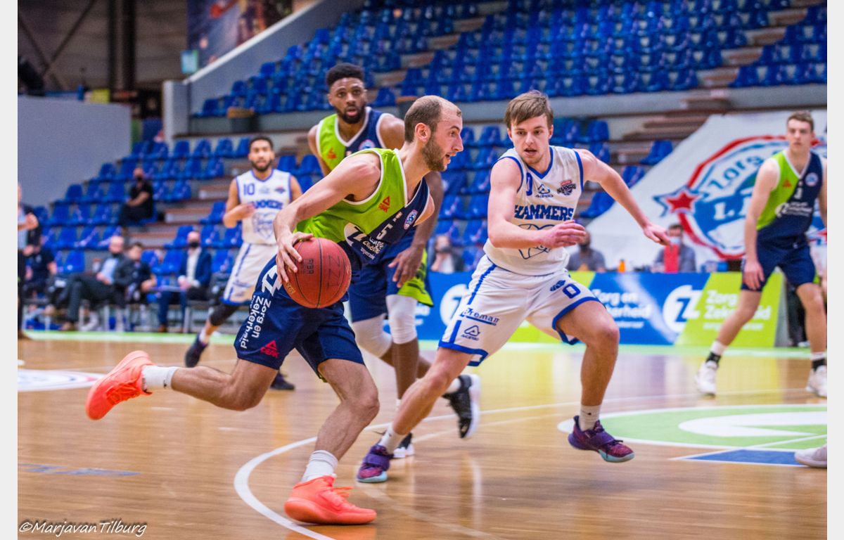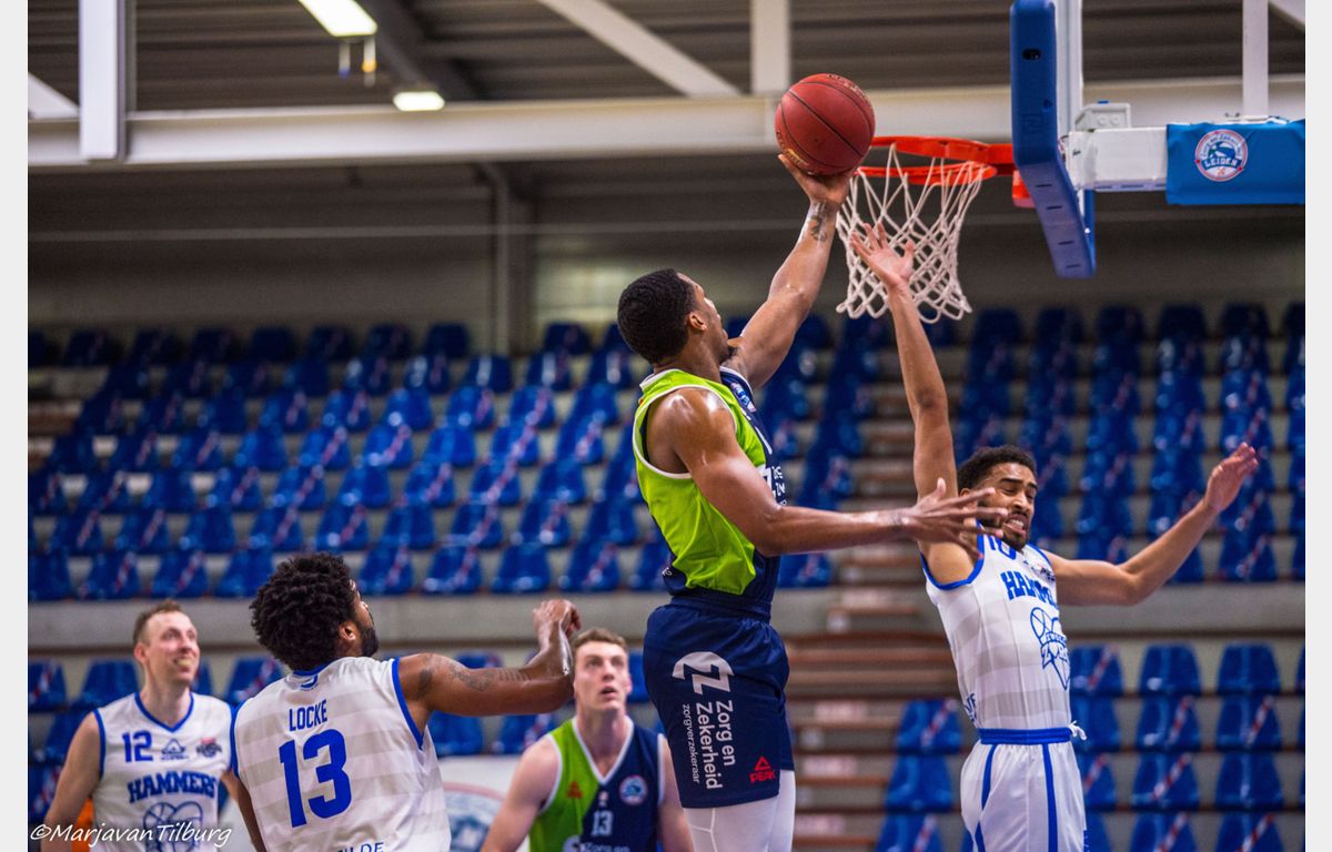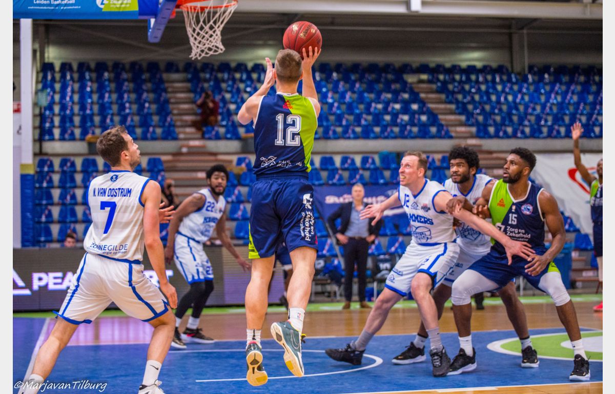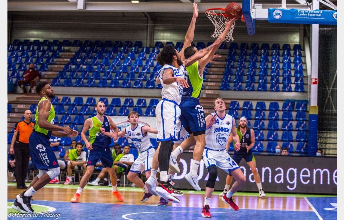 Zorg en Zekerheid Leiden heeft woensdagavond een belangrijke overwinning geboekt. In eigen huis werd Landstede Hammers in een ware nagelbijter met 96-93 verslagen. Buiten dat het onderling resultaat tussen beide ploegen nu weer gelijk is, is het verschil op de ranglijst uitgebreid naar vier punten. Na een betrekkelijk ruime voorsprong kwam Landstede Hammers nog goed terug. 3,2 seconden voor tijd werd het zelfs gelijk. Emmanuel Nzekwesi werd uiteindelijk de matchwinner met een buzzer beating drietje.