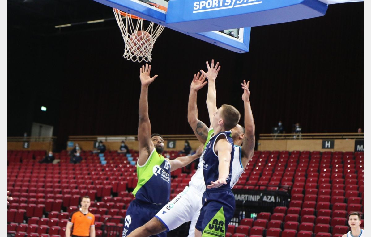 Onder impulsen van Thomas Koenis en opnieuw Ogungbemi-Jackson werd het verschil binnen twee minuten teruggebracht naar 20 punten. Niet voor lang echter, want binnen een minuut haalden Emmanuel Nzekwesi en Finke de trekker over van achter de driepuntslijn. Ondanks een gebroken vinger deed De Jong ook nog een bommetje in het zakje. Opmerkelijk was nog dat LaChance een minuut na zijn vijfde drietje naar de lijn mocht voor drie vrije worpen en deze allemaal miste. Diezelfde LaChance sloot het derde kwart met een raak drietje af om het grootste verschil op de borden te schieten: 50-84.
