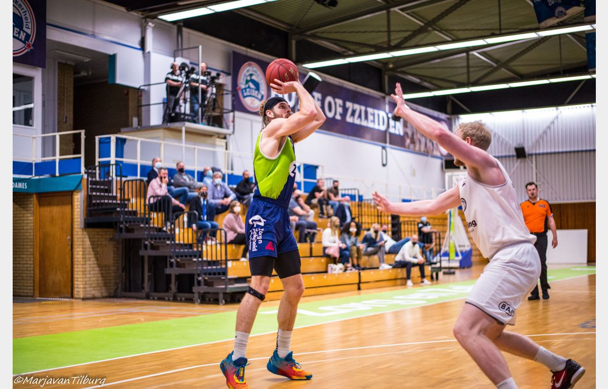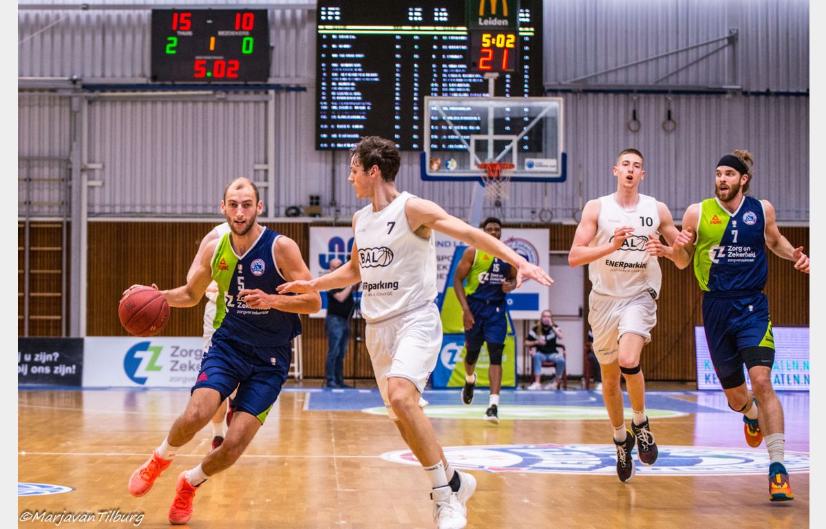 Zorg en Zekerheid Leiden heeft zich opnieuw geplaatst voor de halve finales van de play-offs. De Leidse ploeg had in Weert al met negen punten verschil gewonnen en had dus een goede uitgangspositie. Tot halverwege het tweede kwart bleef Basketbal Academie Limburg nog goed volgen, maar daarna sloeg Zorg en Zekerheid Leiden toe. Via een ruststand van 54-39 werd het uiteindelijk 97-71. Zaterdag beginnen de halve finales met een thuiswedstrijd tegen Landstede Hammers.