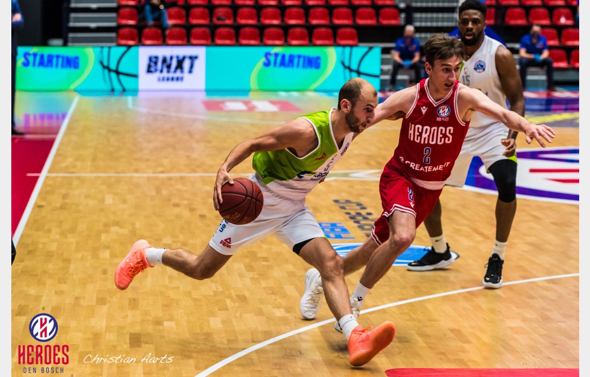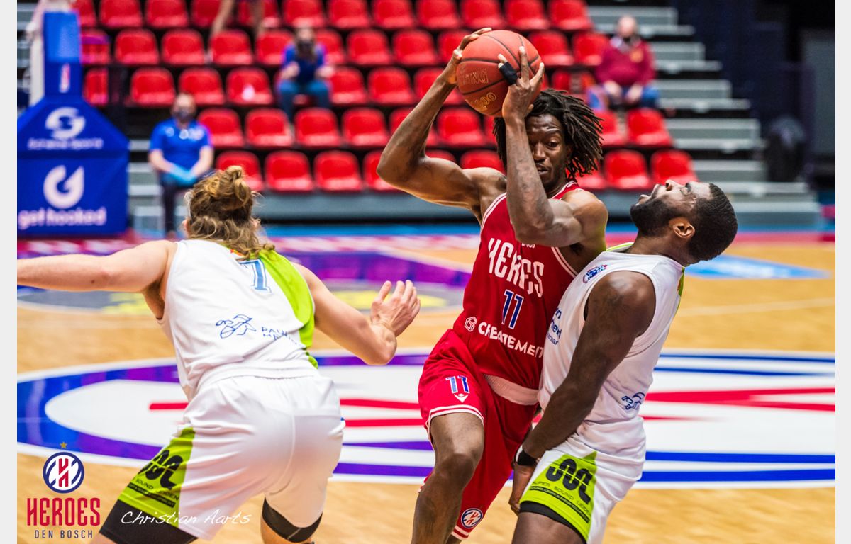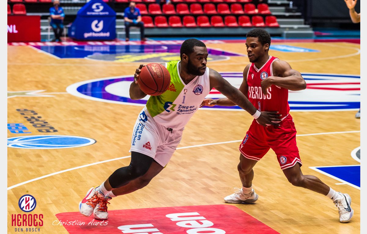 Dat het een lastig avondje kon worden in Den Bosch, bleek wel in de eerste aanval van Zorg en Zekerheid Leiden. Michael Finke, afgelopen zondag nog foutloos van achter de driepuntslijn, opende met een pudding. Toch herstelde de ploeg zich snel. Via scores van Worthy de Jong, Emmanuel Nzekwesi en Giddy Potts (5 punten) liep de Leidse formatie weg naar een 4-9 voorsprong. Mede door een zeer goed spelende DeMario Mayfield (26 punten) haakte Heroes, dat uiteraard aantrad zonder de geschorste Miha Lapornik, weer aan. Ondanks een driepunter van Nick King werd het eerste kwart afgesloten bij 19-16 in het voordeel van de thuisploeg.