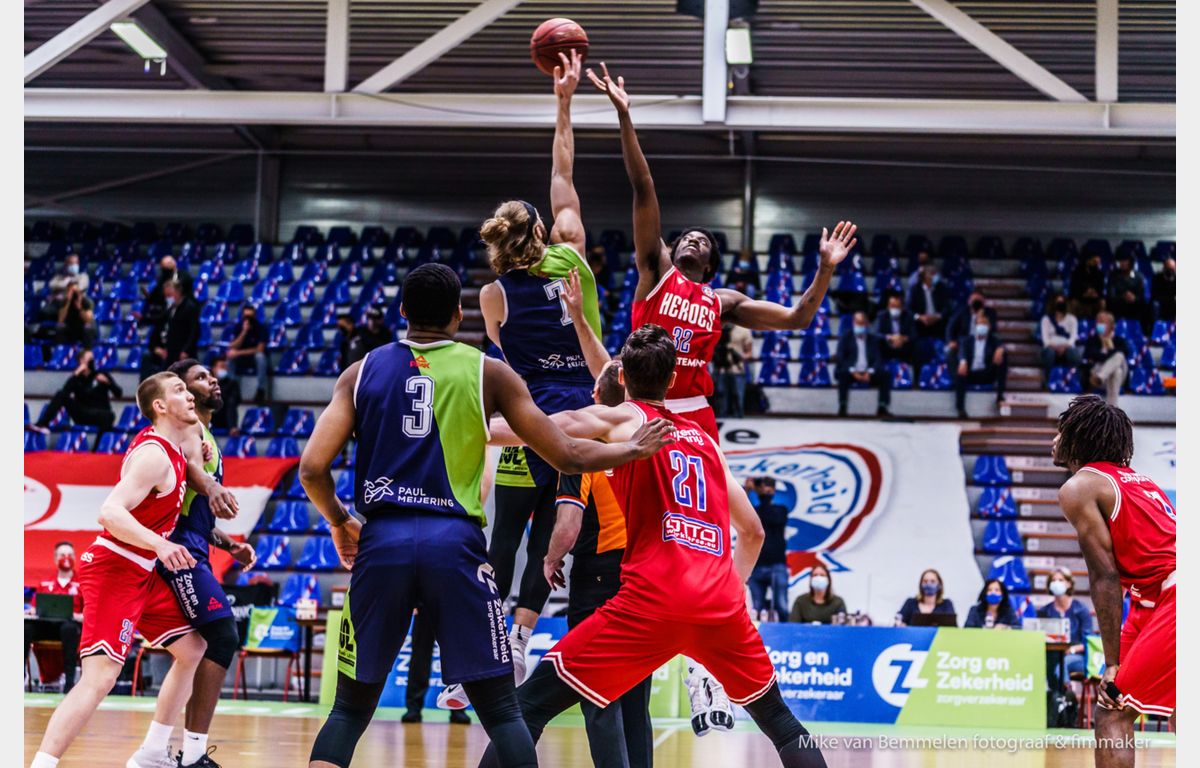 Heroes Den Bosch, dat voor zijn laatste kans vocht, had daar geen boodschap aan en liep van 4-4 door naar 4-13. Luuk van Bree vond de weg voor een driepunter en 9-16. Maar weer waren de volgende scores voor Heroes Den Bosch, zodat het na iets meer dan zeven minuten 9-20 stond. Op dat moment ontvlamde Potts met een driepunter. Na een lay-up van Marijn Ververs tekende Potts voor een and-1 voor 17-20. Jonathon Williams knalde er voor Heroes nog een drietje in, maar het laatste woord van het eerste kwart was voor Michael Finke. Zijn driepunter bracht de stand op 20-23.