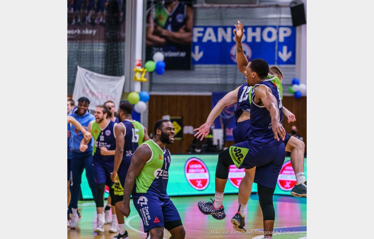 Zorg en Zekerheid Leiden heeft het vierde landskampioenschap in de wacht gesleept. Het was de eerste titel sinds 2013. Heroes Den Bosch nam nog wel een 9-20 voorsprong, maar bij rust stond de Leidse formatie al weer aan kop: 49-43. In het derde kwart liep de marge verder op. Het verschil werd even 24 punten bij 74-50. Na het laatste fluitsignaal gaf het scorebord 90-74 aan. Daarmee boekte Zorg en Zekerheid Leiden een clean sweep tegen Heroes Den Bosch. Worthy de Jong werd uitgeroepen tot MVP van de play-offs.