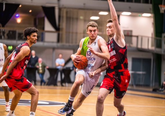 In het derde kwart liep het verschil toch wel flink op. Luuk van Bree en met name Einaras Tubutis (10 punten in het derde kwart) deden een flinke duit in het zakje. Asbjørn Midtgaard pakte enkele vrije worpen mee, zodat het na drie keer tien minuten 43-69 stond.