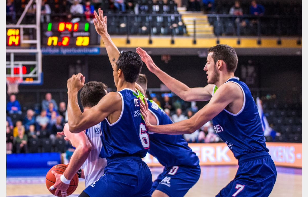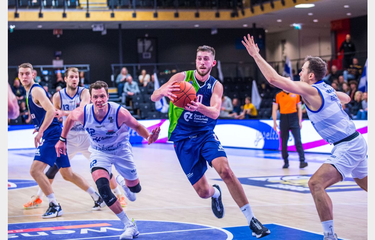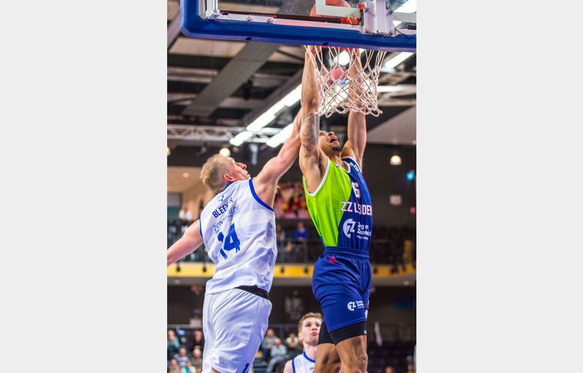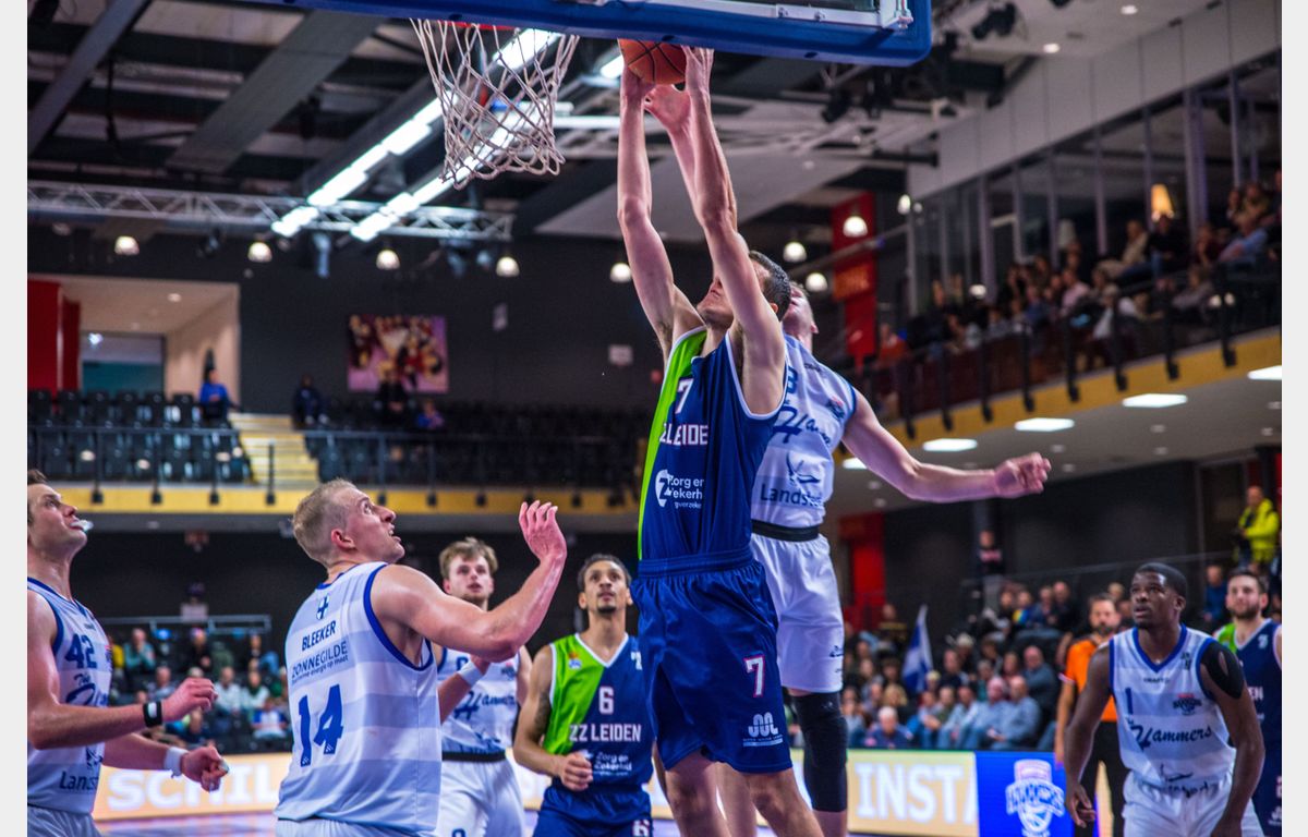 Zorg en Zekerheid Leiden heeft de altijd lastige uitwedstrijd tegen Landstede Hammers in winst omgezet. Na een sterk eerste kwart(15-21) nam de Zwolse formatie het heft in handen. Aan het begin van het vierde kwart pakte de Leidse ploeg de voorsprong terug, maar met nog iets meer dan drie minuten te gaan was Landstede weer aan de leiding gekomen: 66-63. Een 8-0 run van Zorg en Zekerheid Leiden bleek beslissend te zijn: 68-75.