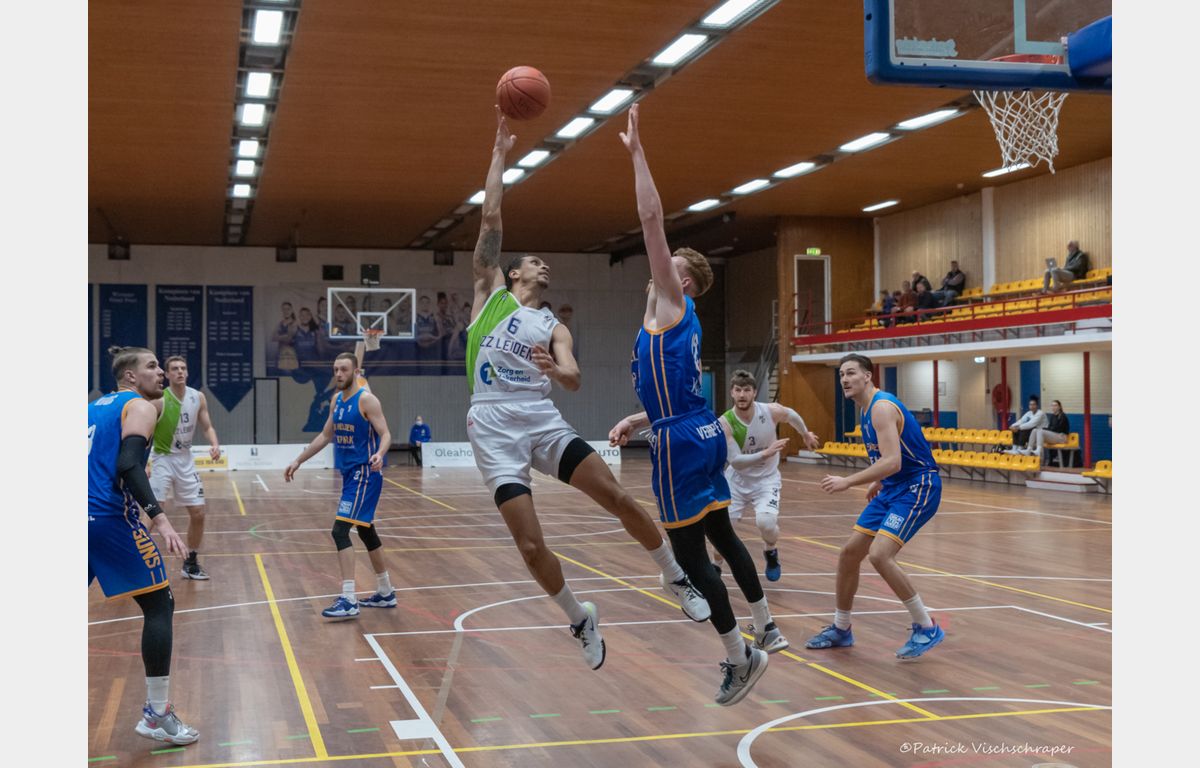 Op de een of andere manier ligt het spelen van wedstrijden in de Helderse Sporthal Sportlaan Zorg en Zekerheid Leiden niet zo. Dat was donderdagavond net zo. De Leidse ploeg kwam pas laat in de wedstrijd op stoom, maar daarna was het ook meteen afgelopen voor Den Helder Suns. Een 20-2 run van de Leidse ploeg, ingezet door een dunk van de vrijwel onzichtbare Asbjørn Midtgaard. Van 57-59 werd het in vijf minuten tijd 59-79. Dat was genoeg om met een 63-82 overwinning weer de bus in te stappen.