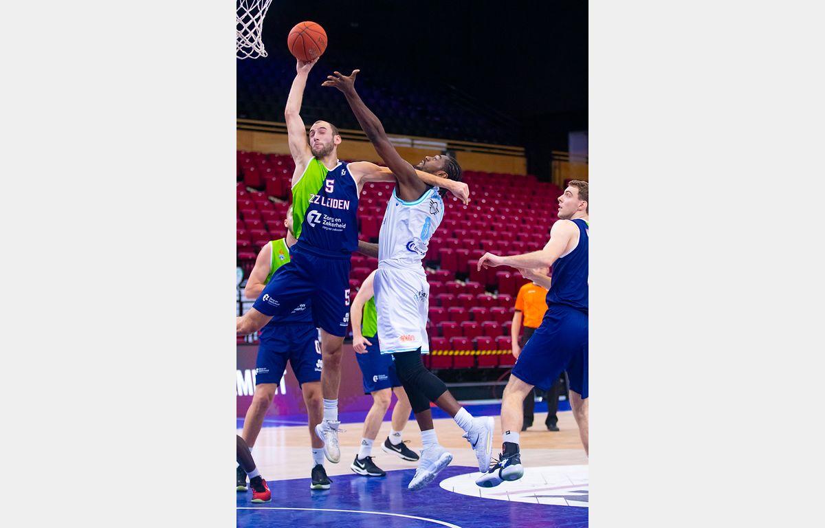Typerend voor het spel van Bouwknecht was een onderhands scoopshot via het bord op de rand van de 24 seconden. In het slot knalde Midtgaard zijn tweede drietje binnen. De laatste score was, tot vreugde van het hele team, een feilloze driepunter van Jamayro de Windt. Daarmee eindigde de vooraf als zwaar betitelde uitwedstrijd in een simpele zege voor Zorg en Zekerheid Leiden: 63-92.