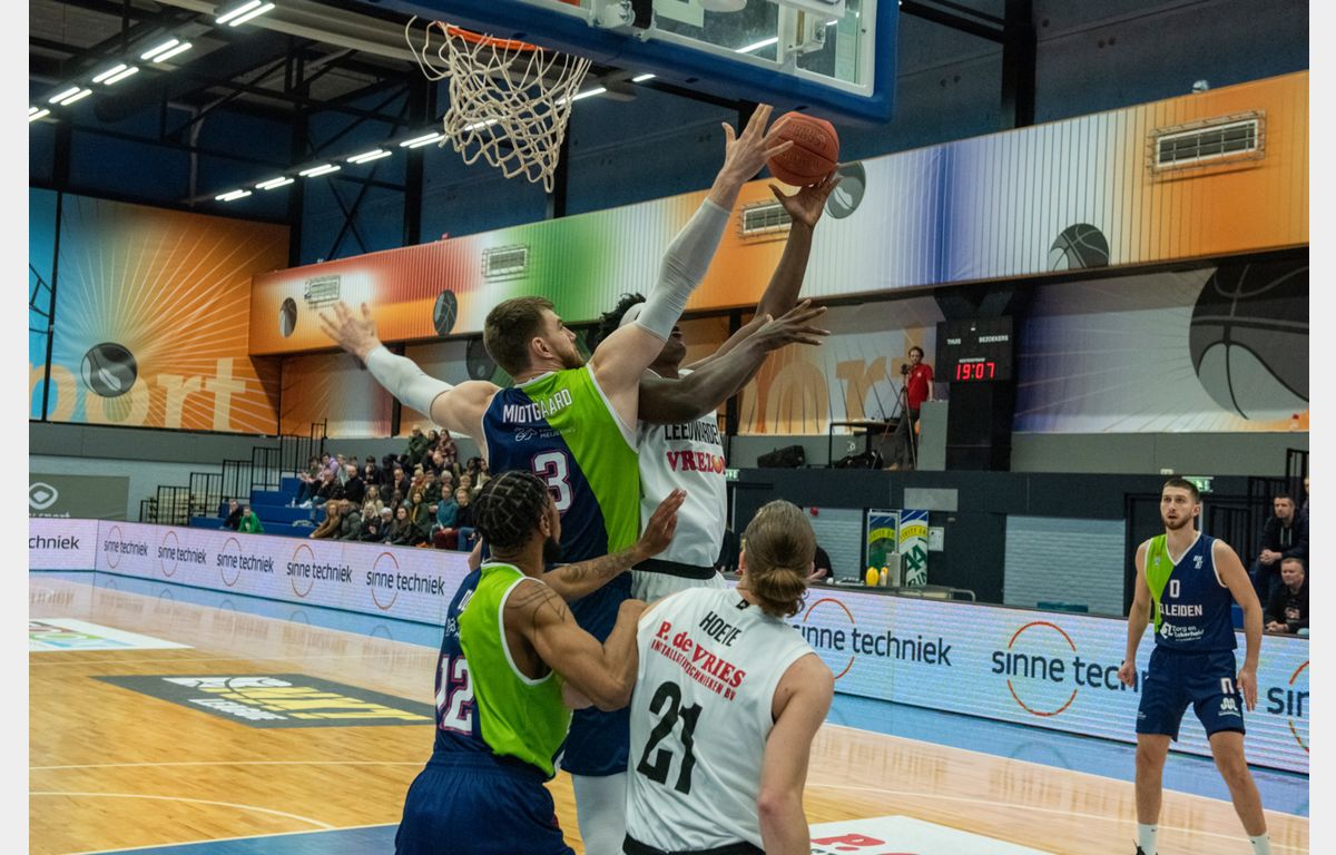 Zorg en Zekerheid Leiden heeft de laatste wedstrijd van de Domestic Round in winst omgezet. Voor rust wist Aris Leeuwarden de Leidse ploeg aardig partij te bieden (33-37), maar na de pauze snelde Zorg en Zekerheid Leiden door naar een 70-94 overwinning. Nu de nationale competitie voorbij is, kan Zorg en Zekerheid Leiden uit gaan kijken naar 10 wedstrijden tegen de top-5 van België. En natuurlijk de kwartfinale van de FIBA Europe Cup.