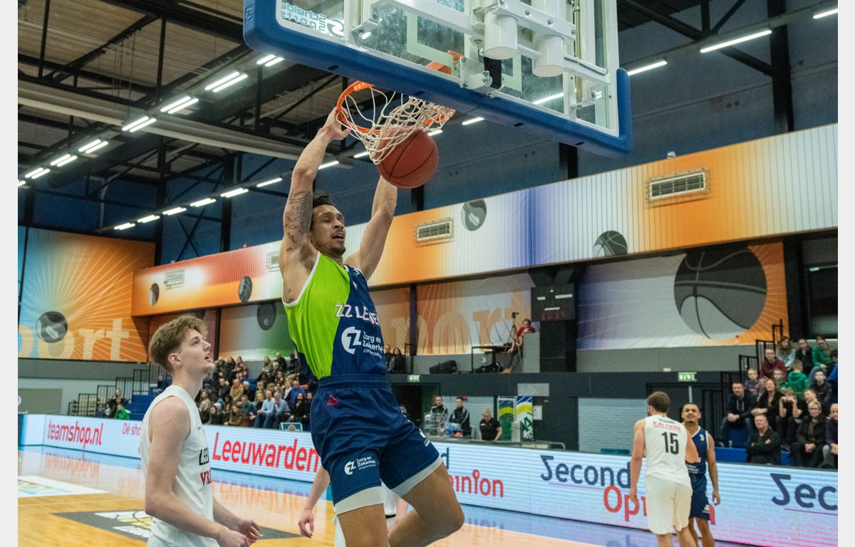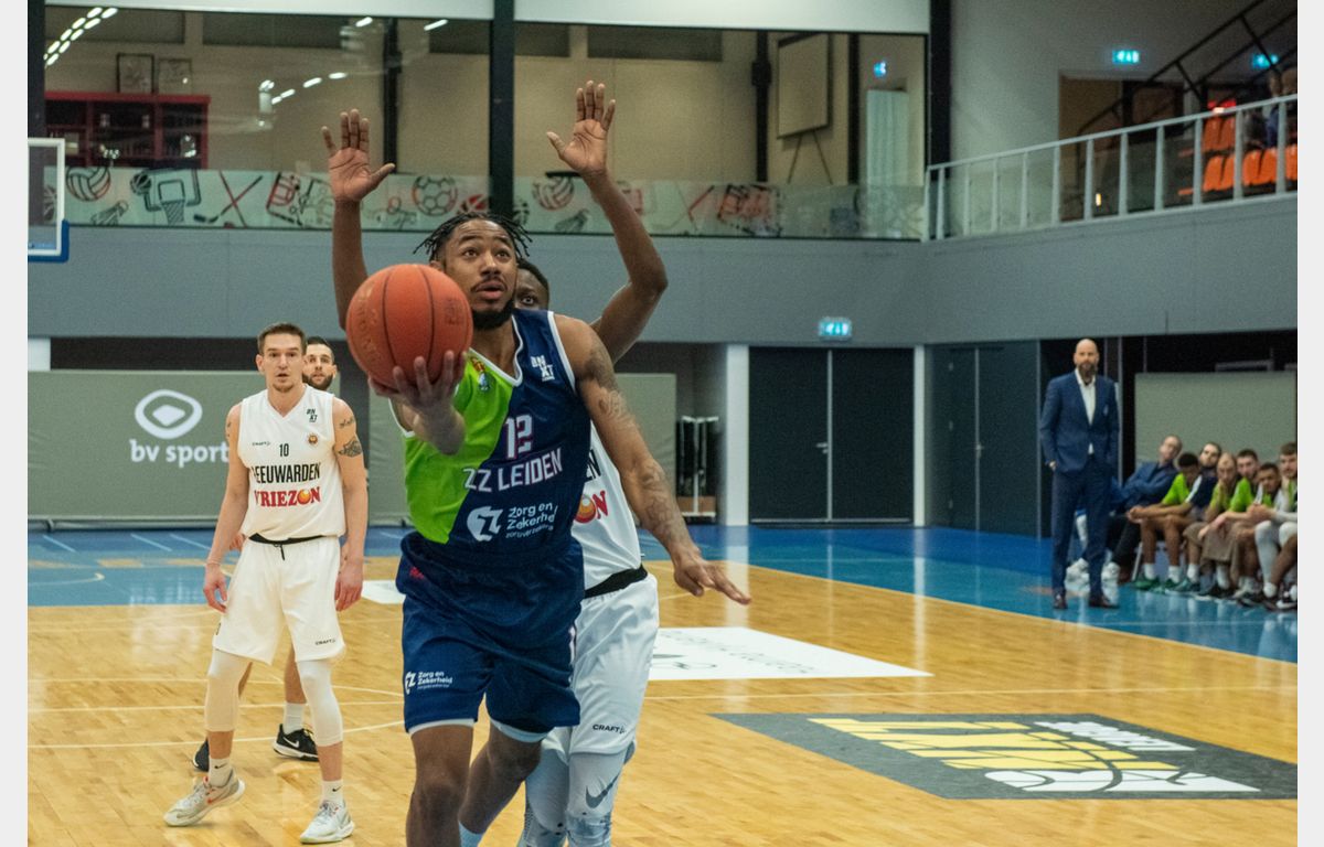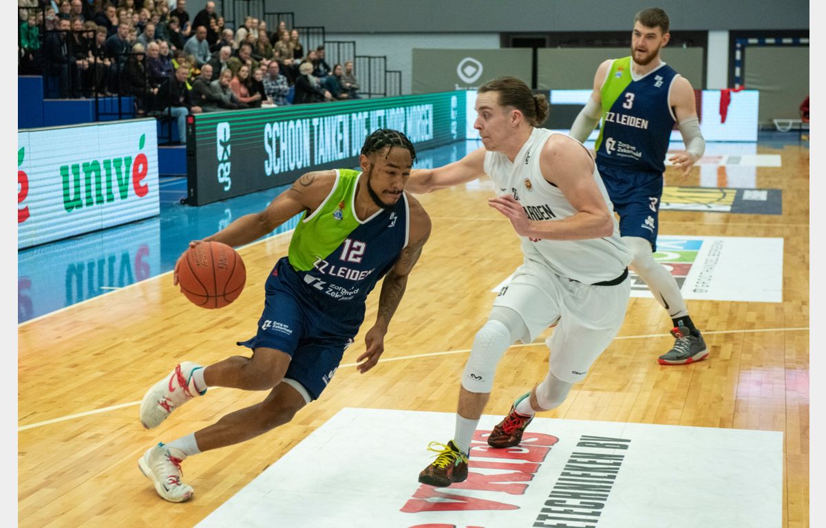 Zorg en Zekerheid Leiden begon goed aan de wedstrijd. Arunas Mikalauskas had het op z’n heupen in de zaal waar zijn Nederlandse carrière in 2019 begon. De Litouwse forward kreeg steun van Jhonathan Dunn en stond na twee minuten in het tweede kwart al met 15-28 voor. Van game over was echter geen sprake. Net als tegen Yoast United kreeg de Leidse ploeg een 12-0 run tegen. Vier minuten voor rust kwam Aris Leeuwarden zelfs op voorsprong, maar toch sloot Zorg en Zekerheid Leiden de eerste helft met een 33-37 voorsprong af.