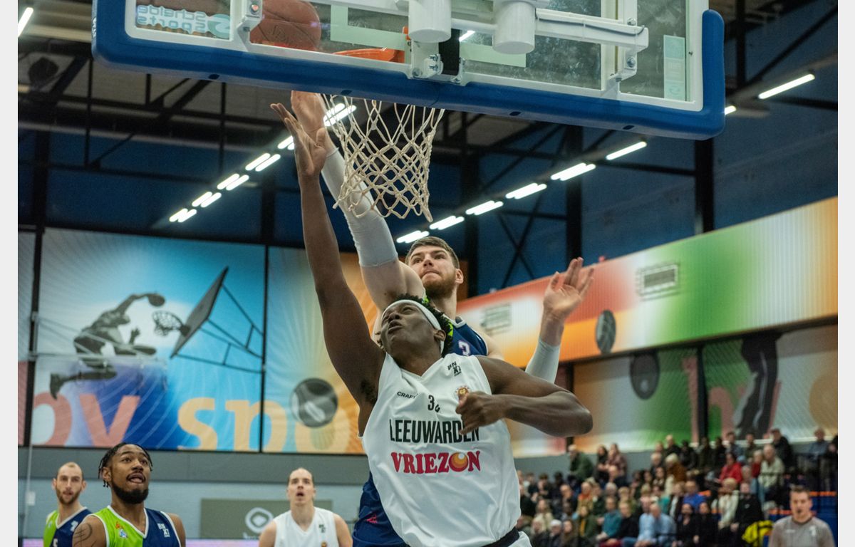 De wedstrijd kende een bijzondere start. Of eigenlijk al in de busreis. Worthy de Jong kwam er achter dat hij geen basketbalschoenen mee had genomen. Met hulp van een Friese manager heeft hij in een sportwinkel een nieuw paar op de kop weten te tikken. Eentje met springveren, want in het laatste kwart kon het publiek nog genieten van drie vliegende dunk van De Jong.