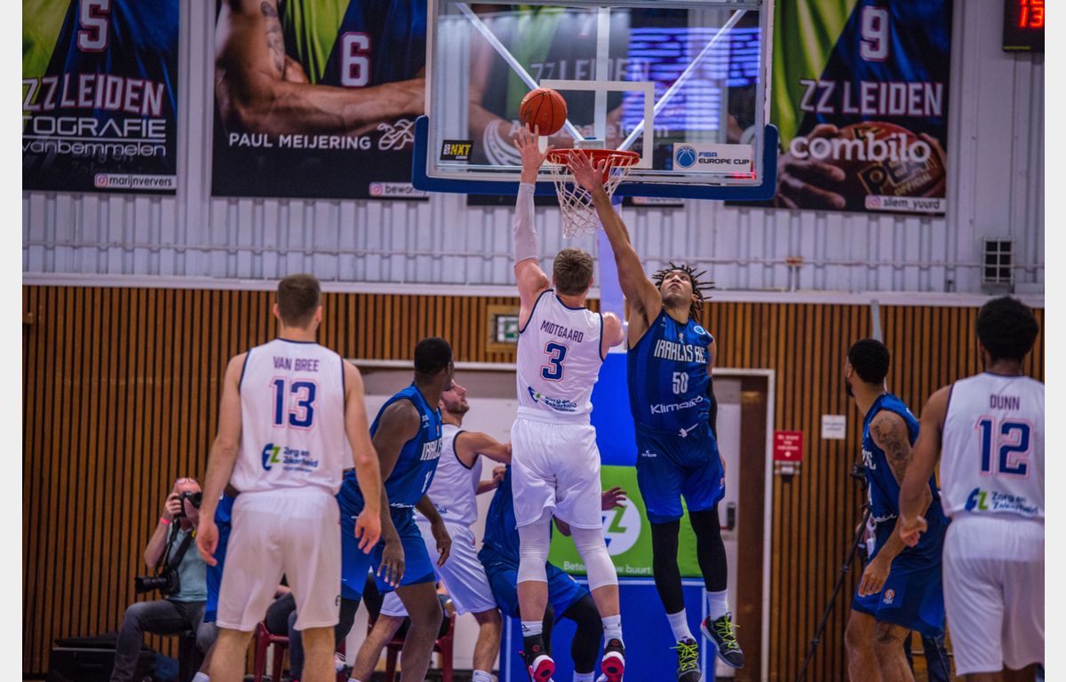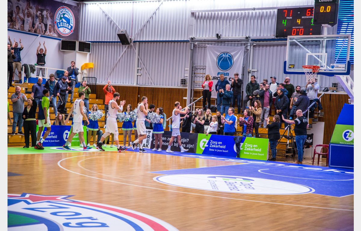 Zorg en Zekerheid Leiden is het toernooi om de FIBA Europe Cup goed begonnen. De Leidse ploeg leed voor de pauze (37-38) te veel balverlies. Dat werd in een goed gevulde Vijf Meihal in de tweede helft beperkt, terwijl Iraklis juist met meer balverlies te maken kreeg. Een dunk van Worthy de Jong en een bommetje van Luuk van Bree gaven de Leidse ploeg de juiste lift in het slotkwart. Met 71-63 werd uiteindelijk de openingswedstrijd in winst omgezet.