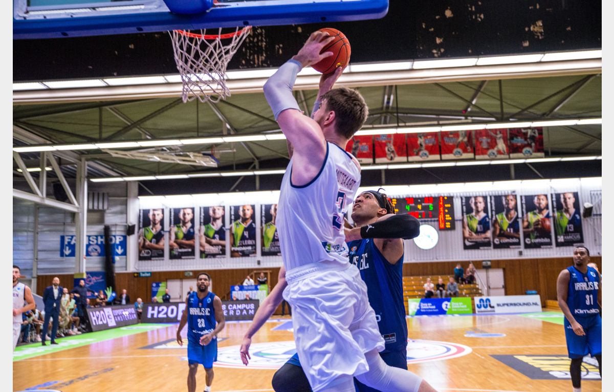 Via een lay-up van De Jong en een and-1 van Maarten Bouwknecht liep Zorg en Zekerheid Leiden uit naar 58-51. Toch wist Iraklis via de kleine Ryan Woolridge weer aan te haken: 60-58. Na een driepunter van Ioannis Agravanis werd het zelfs 62-61 en was het weer nagelbijten geblazen. Niet voor lang, want eerst was daar Tubutis met een drietje, even later deed Van Bree hetzelfde: 68-63 met nog 2’29 te gaan. Na een rebound van Midtgaard slalomde De Jong over het veld om aan het eind van zijn run snoeihard over Lynch heen te dunken: 70-63. Met een rake vrije worp bepaalde Midtgaard de eindstand op 71-63. Het dak ging er af!