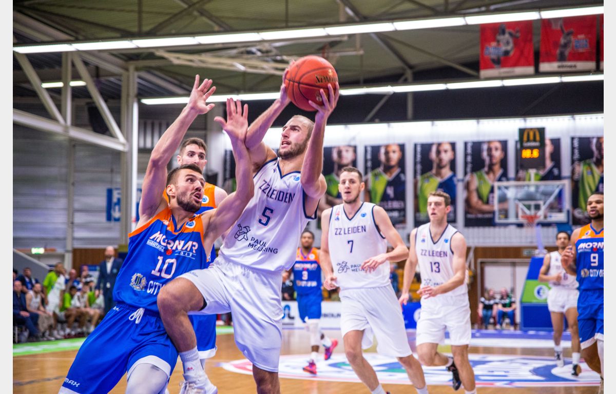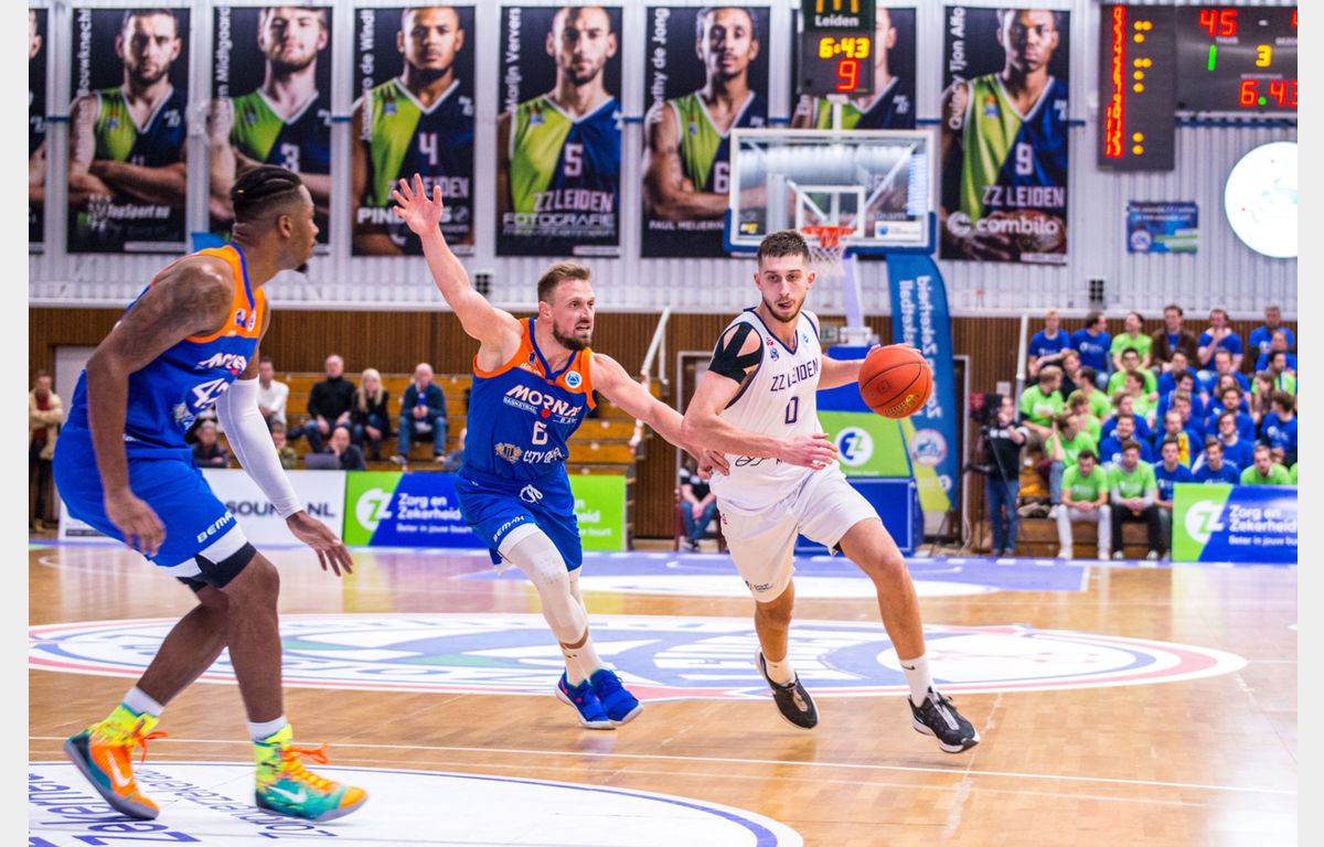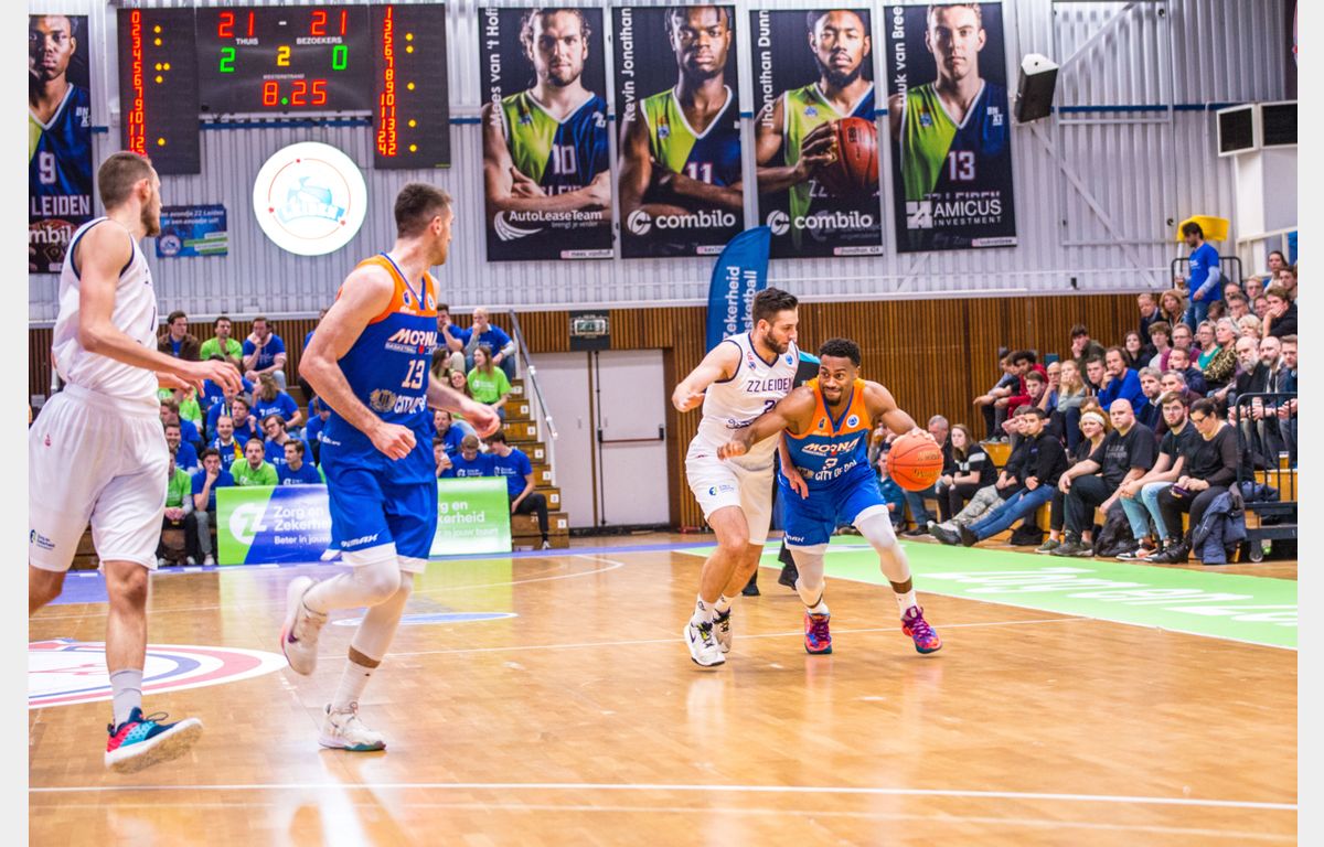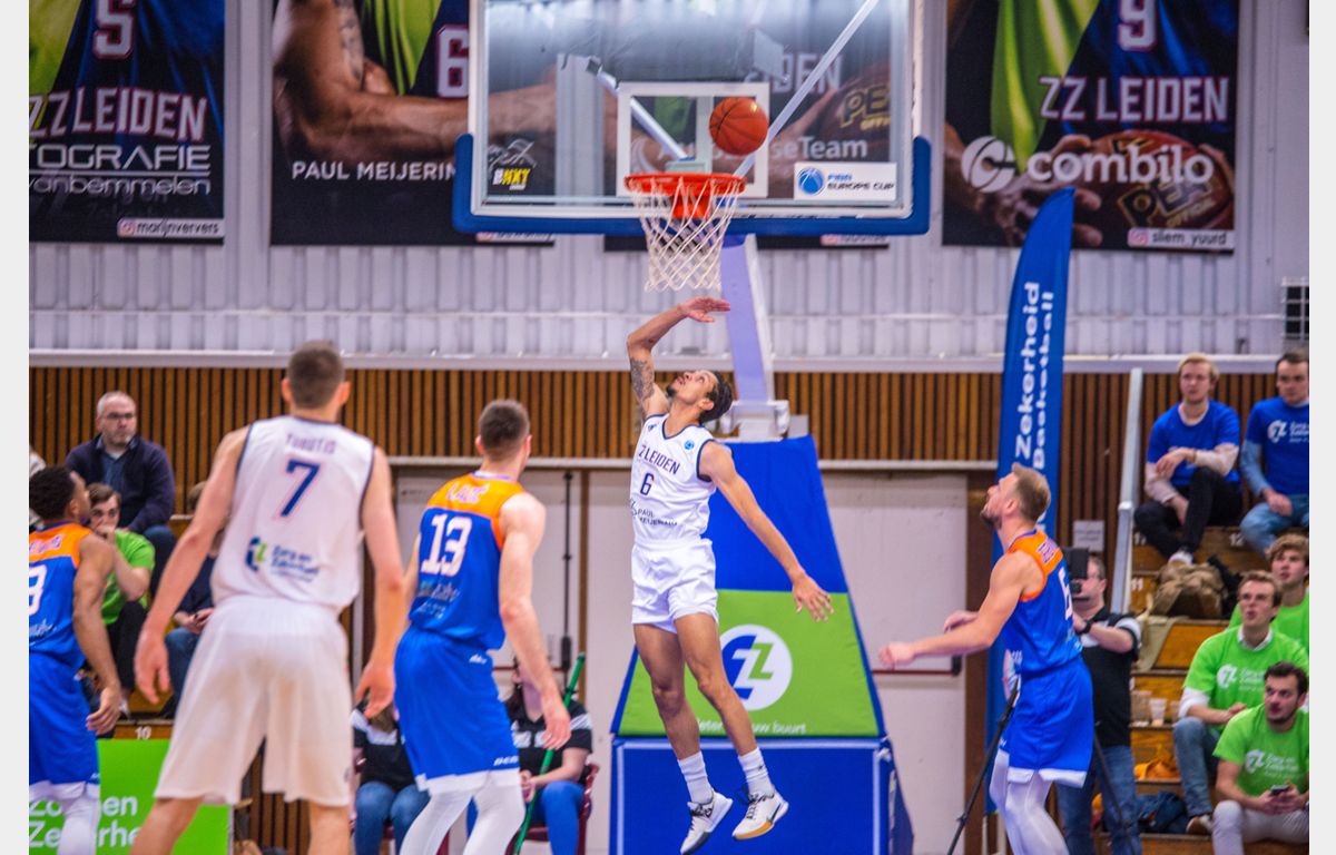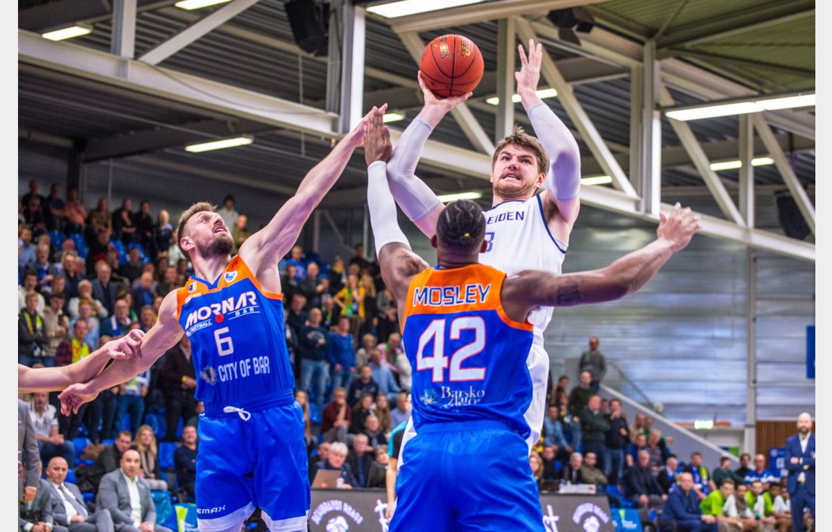 Een fraaie assist van De Jong leidde tot een dunk van Tubutis. Nadat Mornar Bar had gemist, stelde Marijn Ververs met een lay-up plus rake bonus de Leidse zege definitief veilig. De winstpartij leidde tot een staande ovatie van het uitzinnige publiek. Volgende week woensdag valt dus de beslissing of Zorg en Zekerheid Leiden Europees mag overwinteren of dat de tournee in Turkije eindigt.