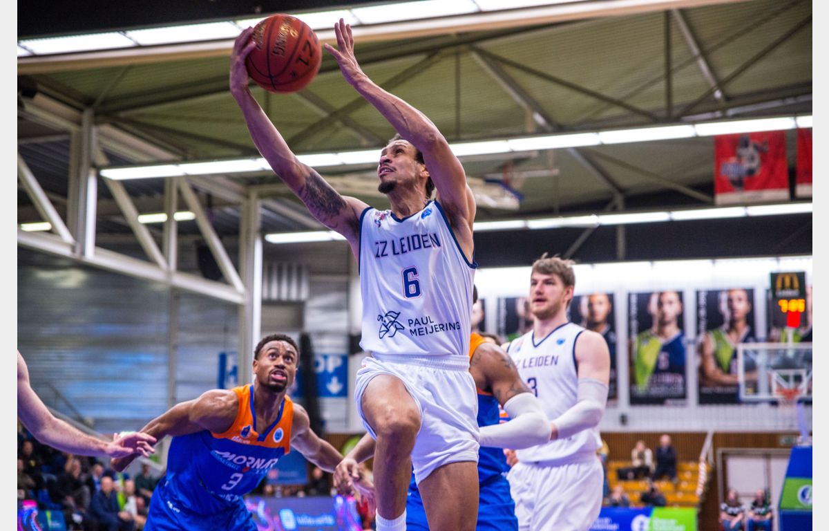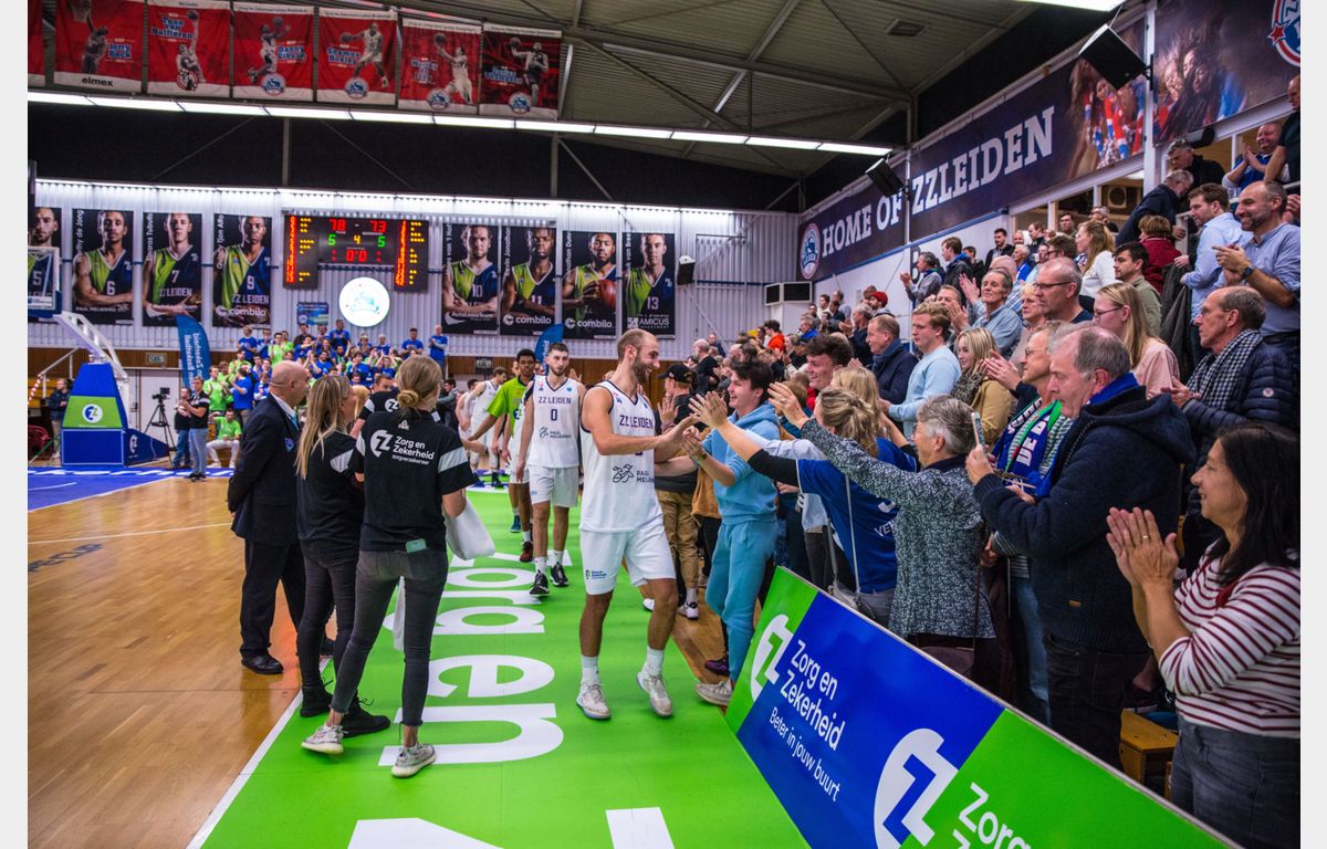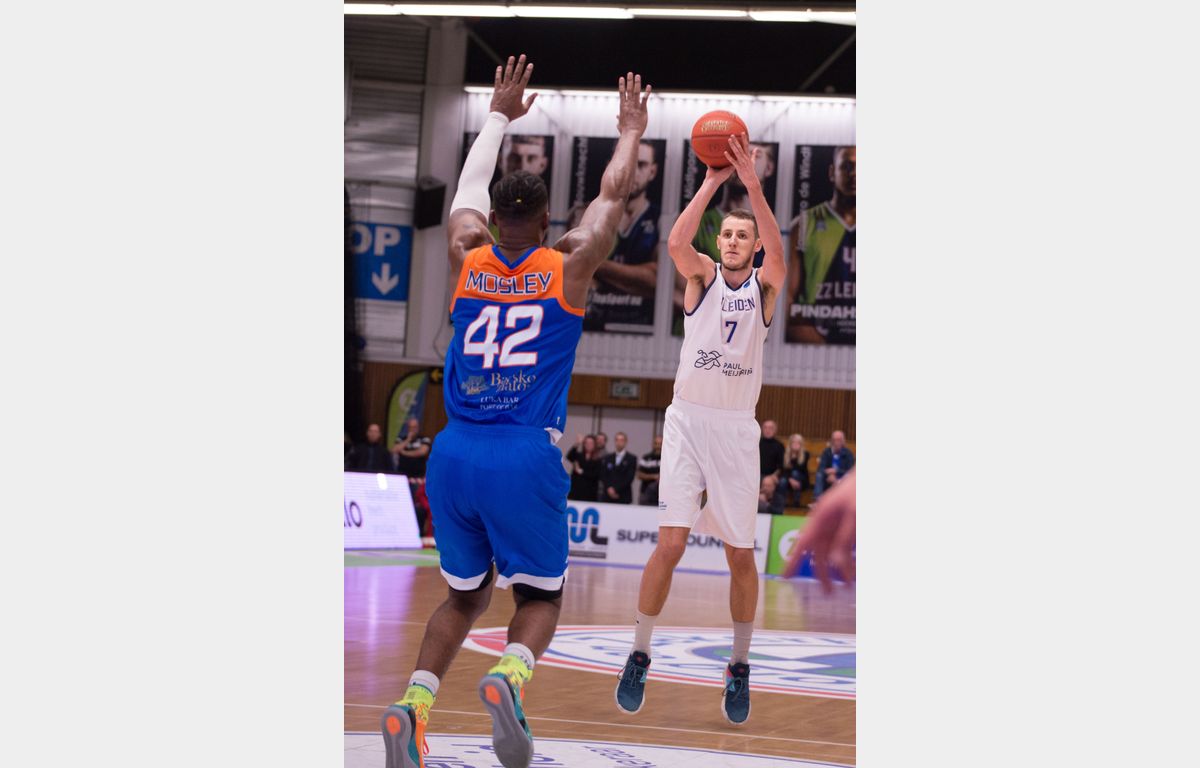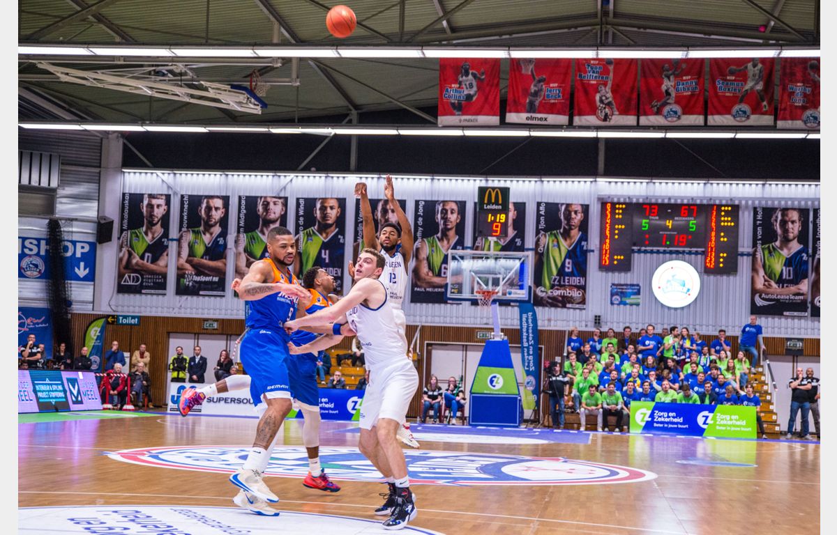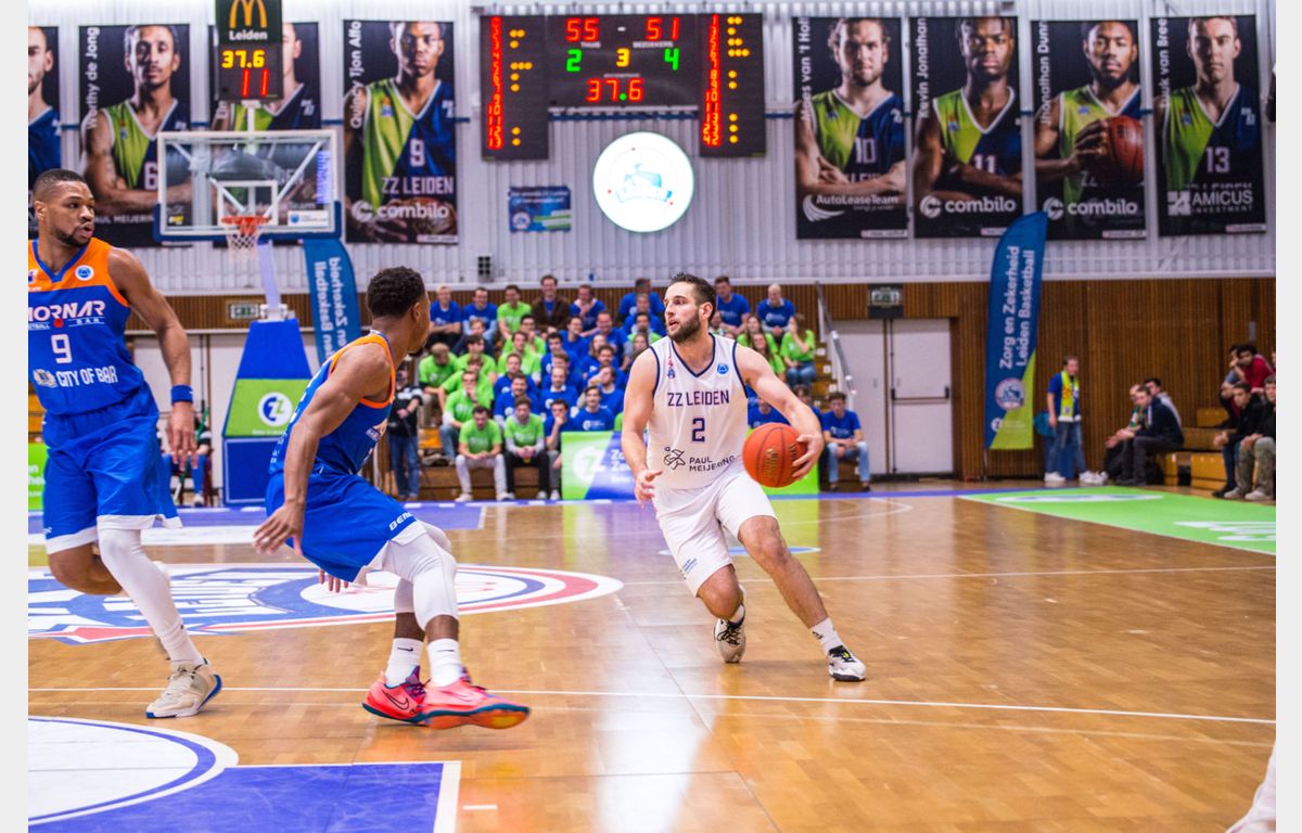 Een fraaie assist van De Jong leidde tot een dunk van Tubutis. Nadat Mornar Bar had gemist, stelde Marijn Ververs met een lay-up plus rake bonus de Leidse zege definitief veilig. De winstpartij leidde tot een staande ovatie van het uitzinnige publiek. Volgende week woensdag valt dus de beslissing of Zorg en Zekerheid Leiden Europees mag overwinteren of dat de tournee in Turkije eindigt.