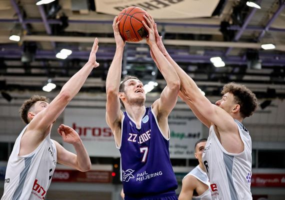 Sacar Anim zorgde nog weer voor spanning door vervolgens een driepunter raak te knallen, maar aan de andere kant was Midtgaard succesvol in de aanvallende rebound. En opeens was daar Worthy de Jong met de steal die de aanval van de Duitsers stopte. Na een reeks van persoonlijke fouten werd Dunn met nog zeven seconden naar de lijn gestuurd. De Amerikaan schoot ijzig kalm beide vrije worpen raak: 84-89. Na een time-out van Korner wilde Anim voor een drietje gaan, maar hij stond met één been op de zijlijn. Daarmee was het over en uit en was de Leidse sensatie compleet.