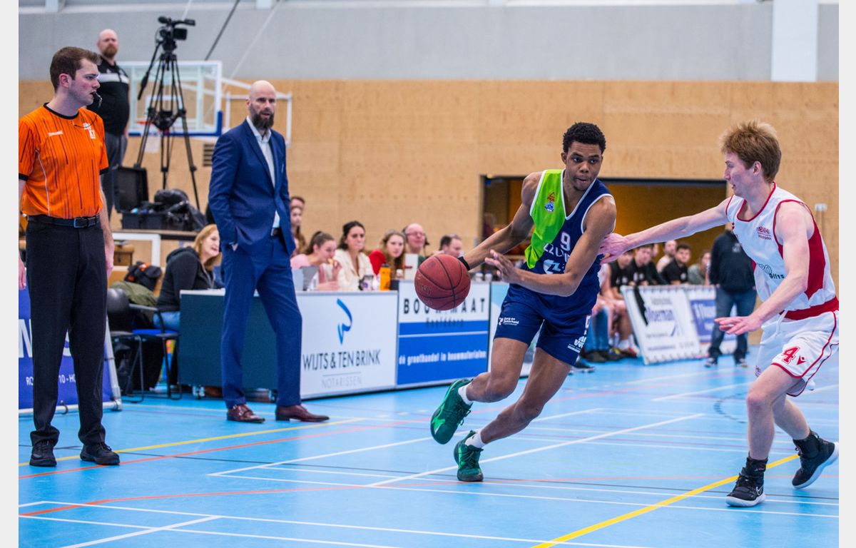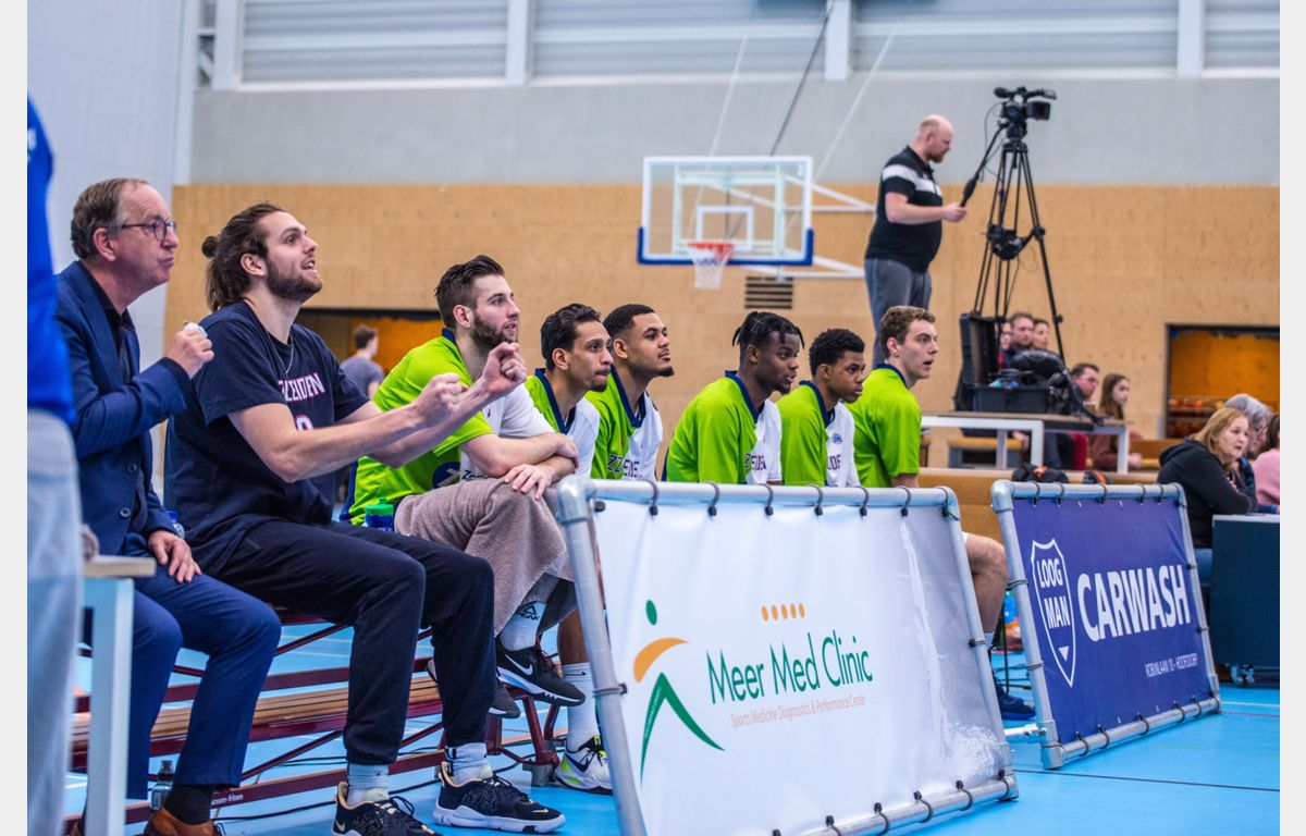Scores: Luuk van Bree 21, Jhonathan Dunn 20, Asbjørn Midtgaard 12, Kevin Jonathan 10, Einaras Tubutis 9 (9 rebounds), Quincy Tjon-Affo 9, Maarten Bouwknecht 5 (8 assists), Marijn Ververs 5 en Worthy de Jong 4 (4 steals).