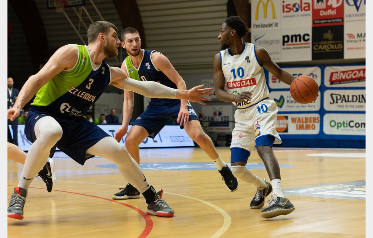 Luuk van Bree was na afloop van het spannende duel duidelijk. “We begonnen te slap aan de wedstrijd”, zei hij voor de camera’s van Ziggo Sport. Daar was niets aan gelogen. In de eerste vier minuten wist Zorg en Zekerheid Leiden nog gelijke tred te houden met Kangoeroes Basket Mechelen, waar de jonge Nederlander Jesse Waleson een goede pot neerzette met 12 punten. Van 8-10 liep de Belgische formatie door naar een 20-12 voorsprong. Zorg en Zekerheid Leiden was slordig en zag de achterstand in het eerste kwart zelfs oplopen naar 12 punten (26-14). Via scores van Worthy de Jong en Jhonathan Dunn werd het eerste kwart bij 28-18 afgesloten.