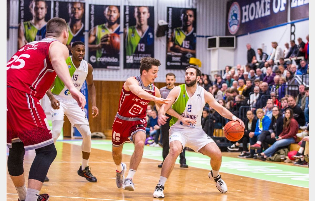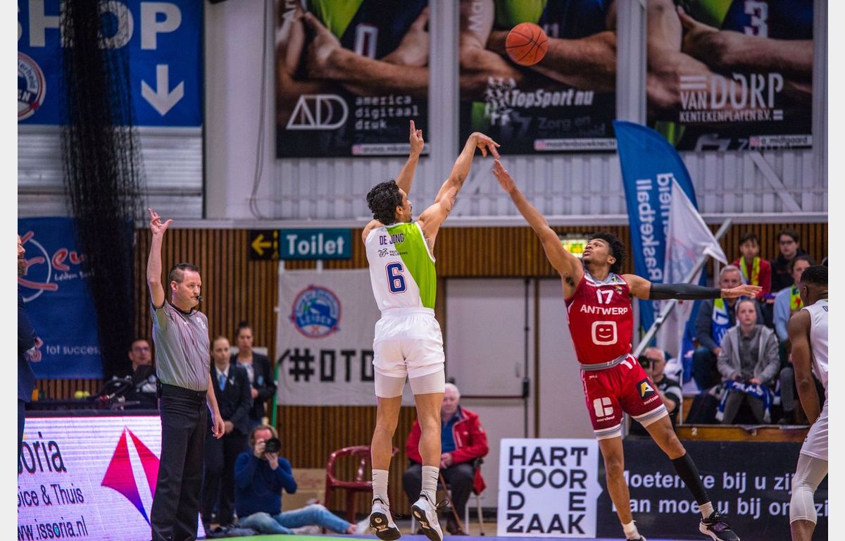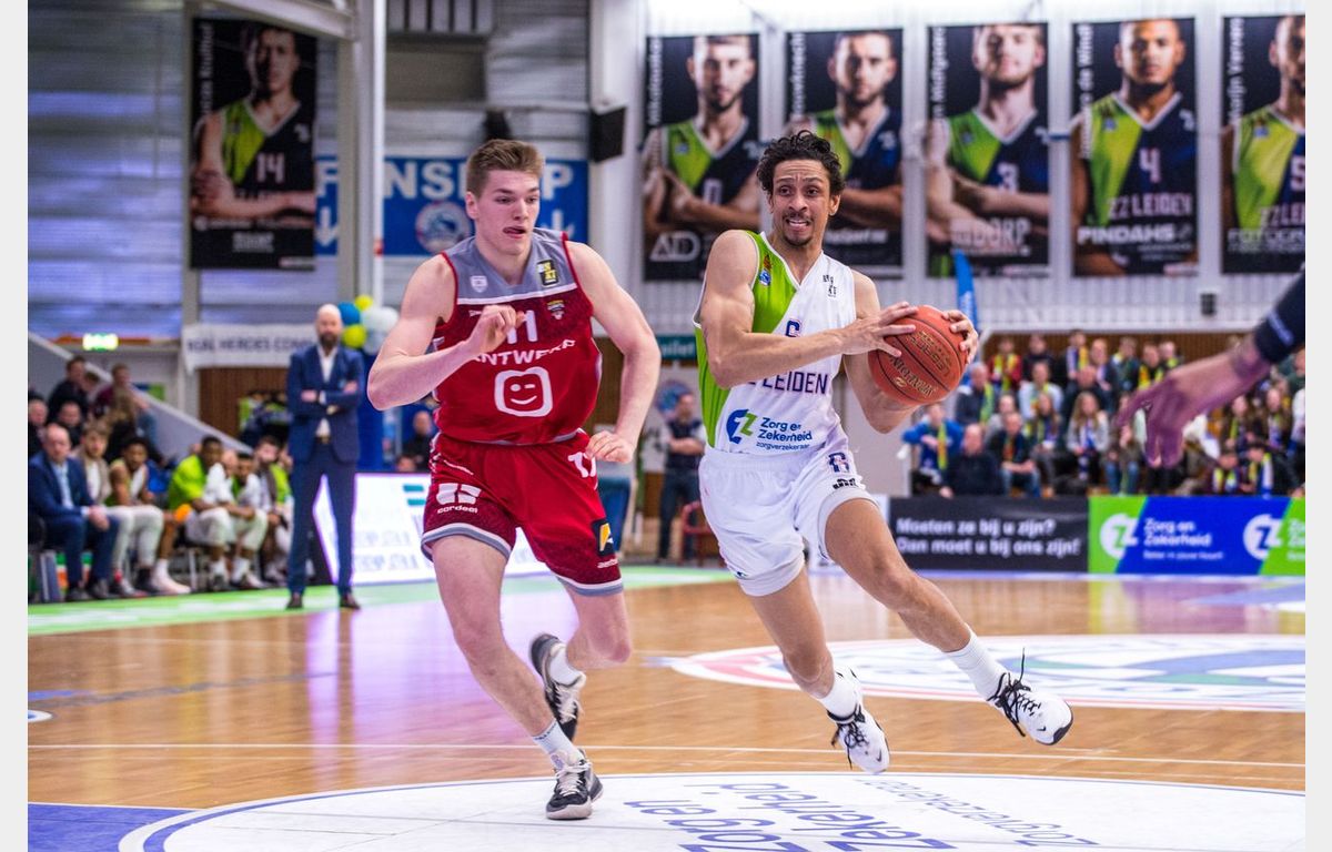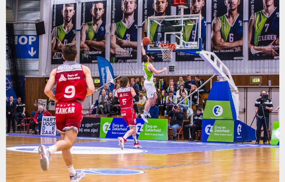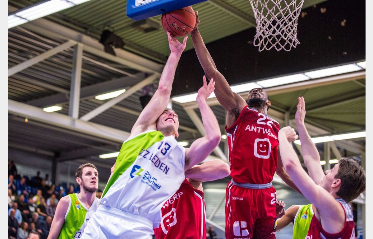 Zorg en Zekerheid Leiden is de voordelige positie ten opzichte van Heroes Den Bosch kwijt. De Leidse ploeg ging na verlenging ten onder tegen Telenet Giants Antwerp. Met name in het tweede kwart moest de Leidse ploeg de Belgische formatie laten gaan. In de slotfase wist Zorg en Zekerheid Leiden er nog een verlenging uit te slepen. Daarin kwam de formatie van coach Geert Hammink net te kort: 92-96.