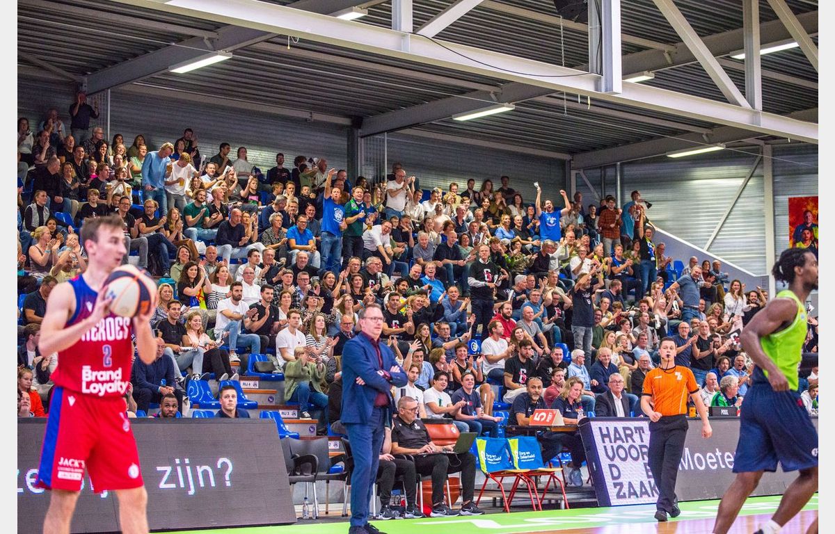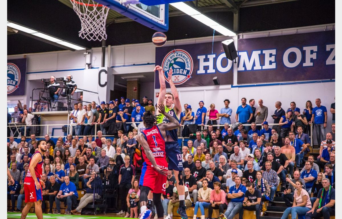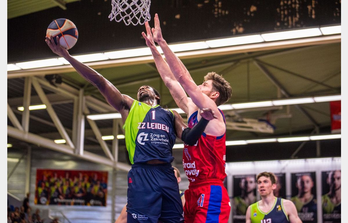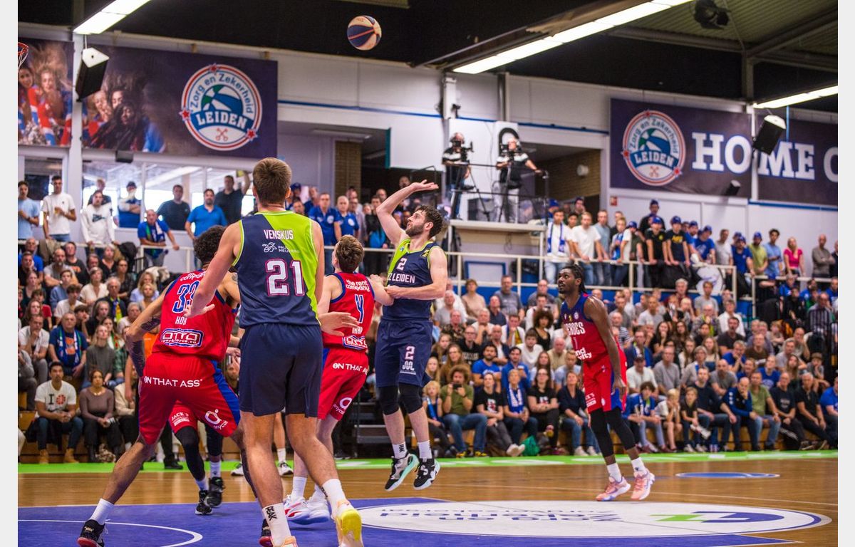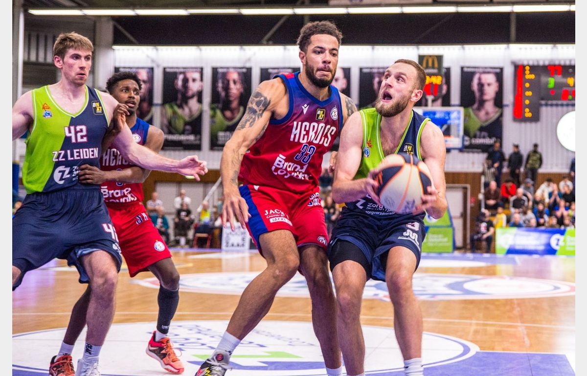 De Vijf Meihal was afgeladen. Veel mensen waren naar de hal gekomen om het afscheid van Worthy de Jong mee te maken. Daar moesten ze nog wel even opwachten, want eerst was er nog de confrontatie tussen Zorg en Zekerheid Leiden en Heroes Den Bosch, de twee nog ongeslagen ploegen in het Nederlandse deel van de BNXT League. Zorg en Zekerheid Leiden kende een prima start van de klassieker. Luuk van Bree opende met een driepunter en ook Deion Hammond wist van ver twee keer raak te knallen. De Leidse ploeg nam een voorsprong van acht punten. Een halve minuut voor het einde van het eerste kwart bracht Maarten Bouwknecht met een drietje het verschil op 9 punten. Keime Helfrich besloot het kwart met een driepunter voor Heroes Den Bosch: 28-22.